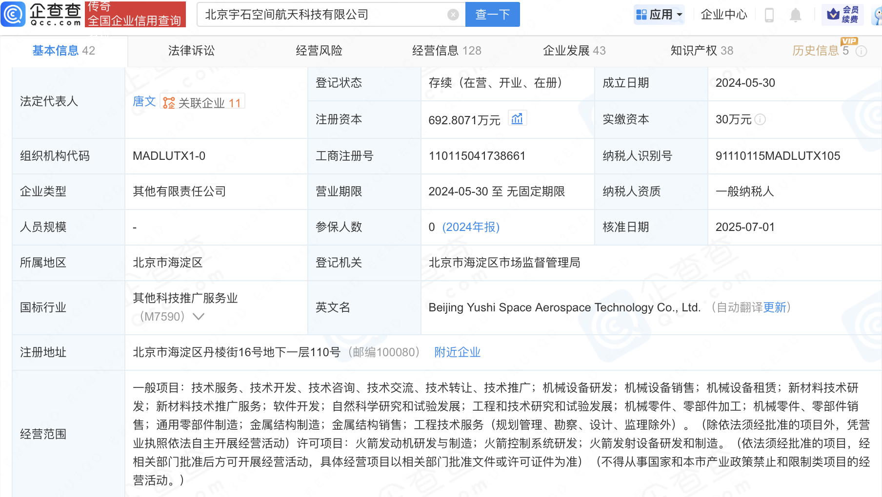 近日,宇石空间宣布其在湖南火箭研制基地成功举办首届"AS-VISION"年度生态大会,并正式交付其首发70m级可复用不锈钢液体运载火箭——AS-1,而从湖南基地开工到首枚火箭交付,历时仅仅4个月。企查查显示,北京宇石空间航天科技有限公司成立于2024年,经营范围包含:火箭发动机研发与制造;火箭控制系统研发;火箭发射设备研发和制造等。目前宇石空间已在湖南成立多家新公司,包括宇石空间(长沙市)工业科技有限公司、宇石空间(湖南)重工科技有限公司等。