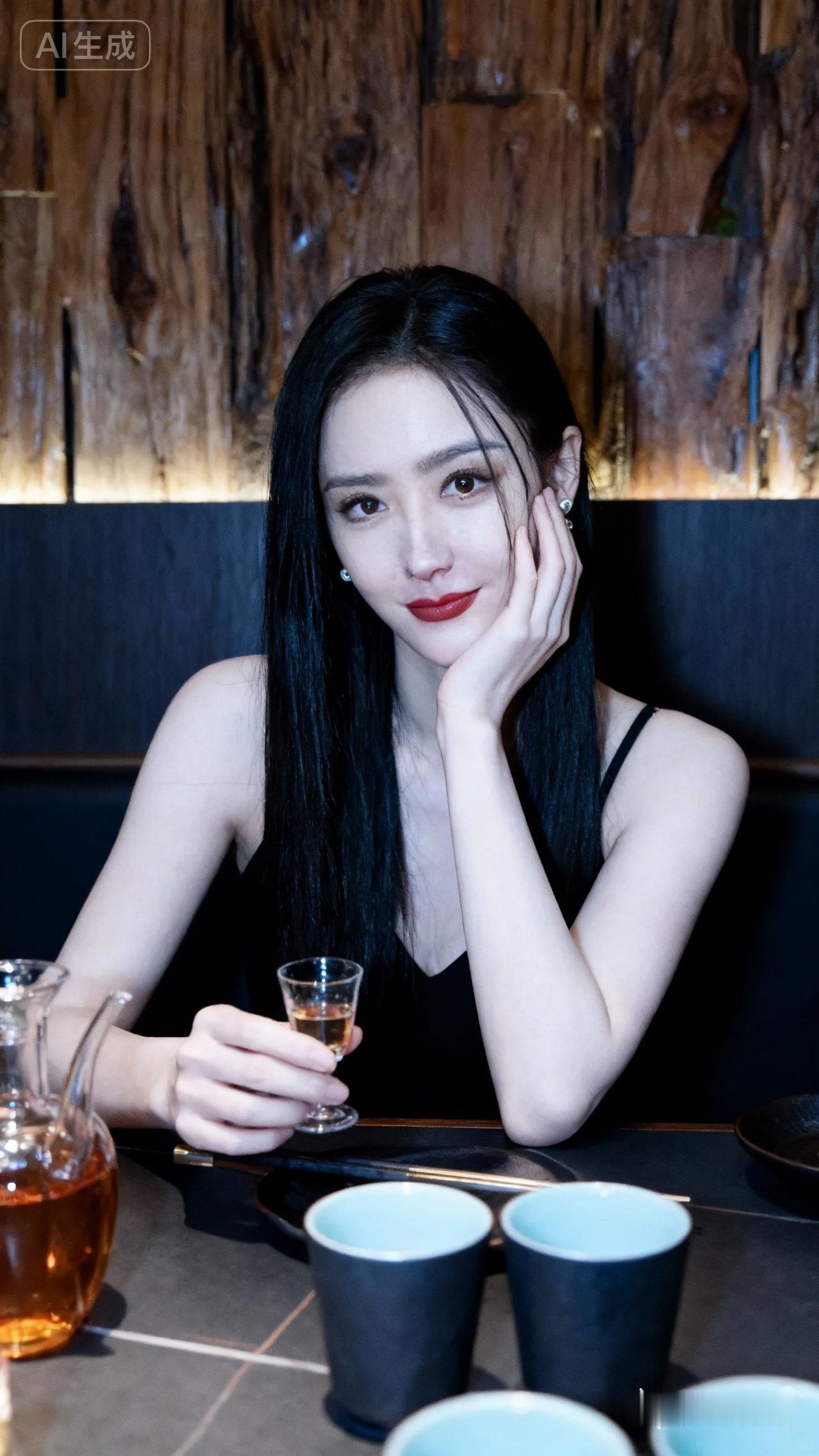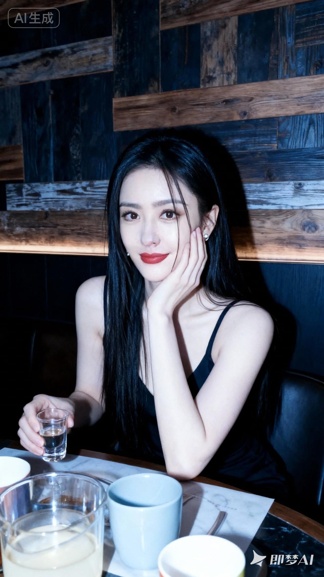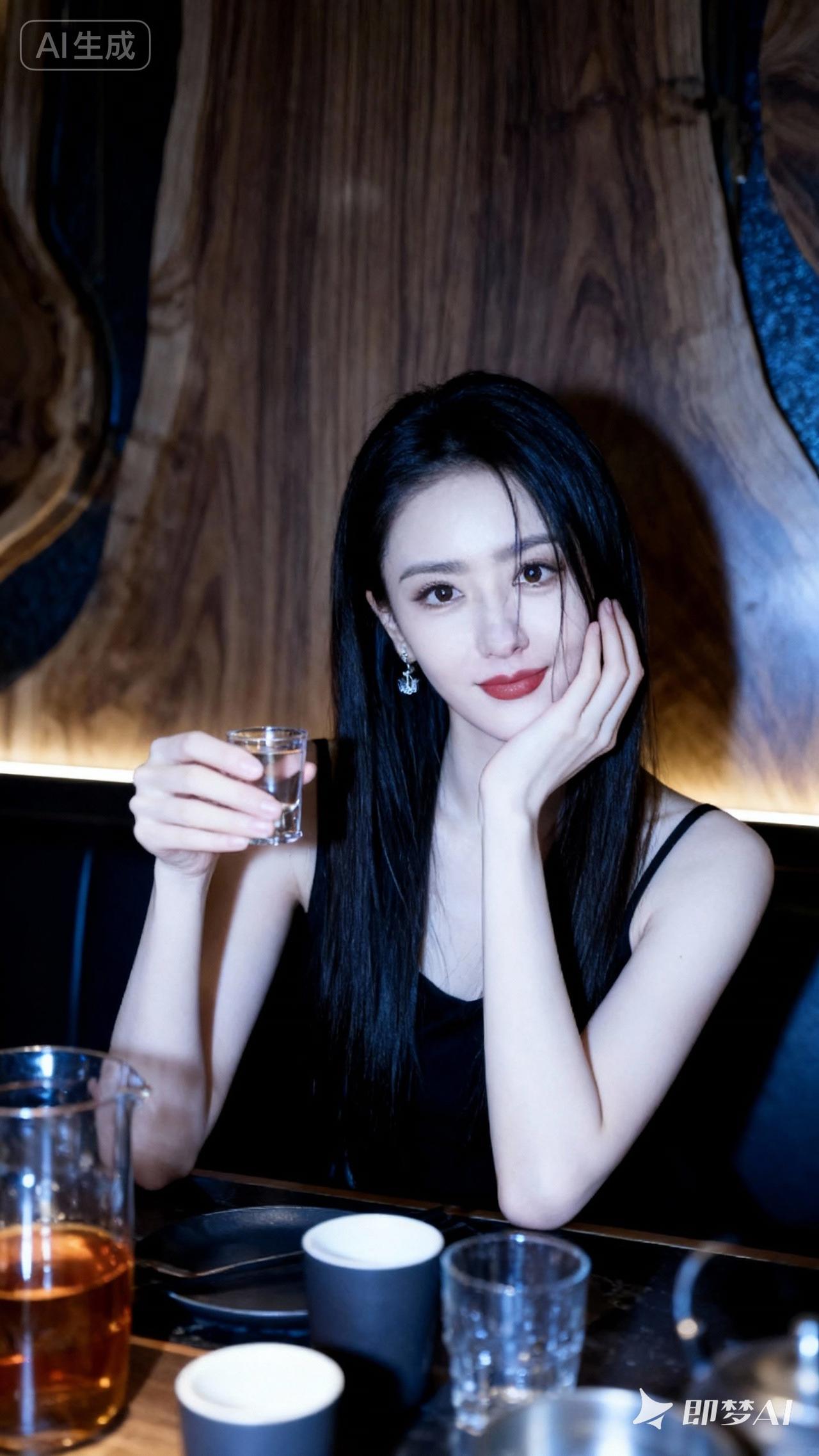 夜晚的酒吧,微醺的时光,黑裙女孩的温柔微笑