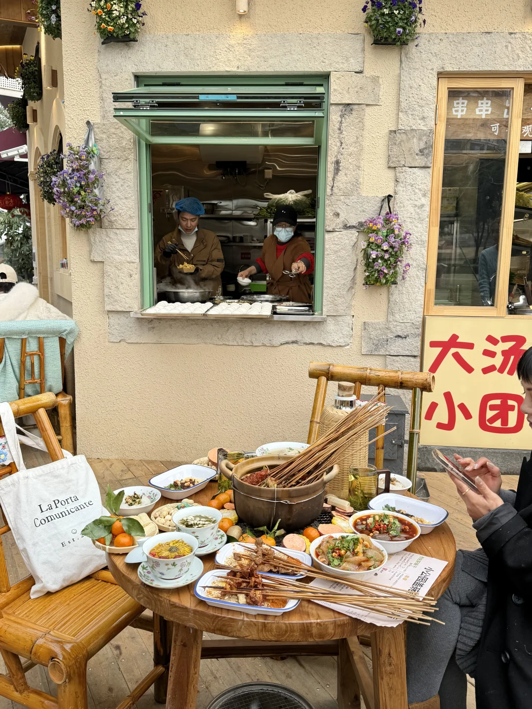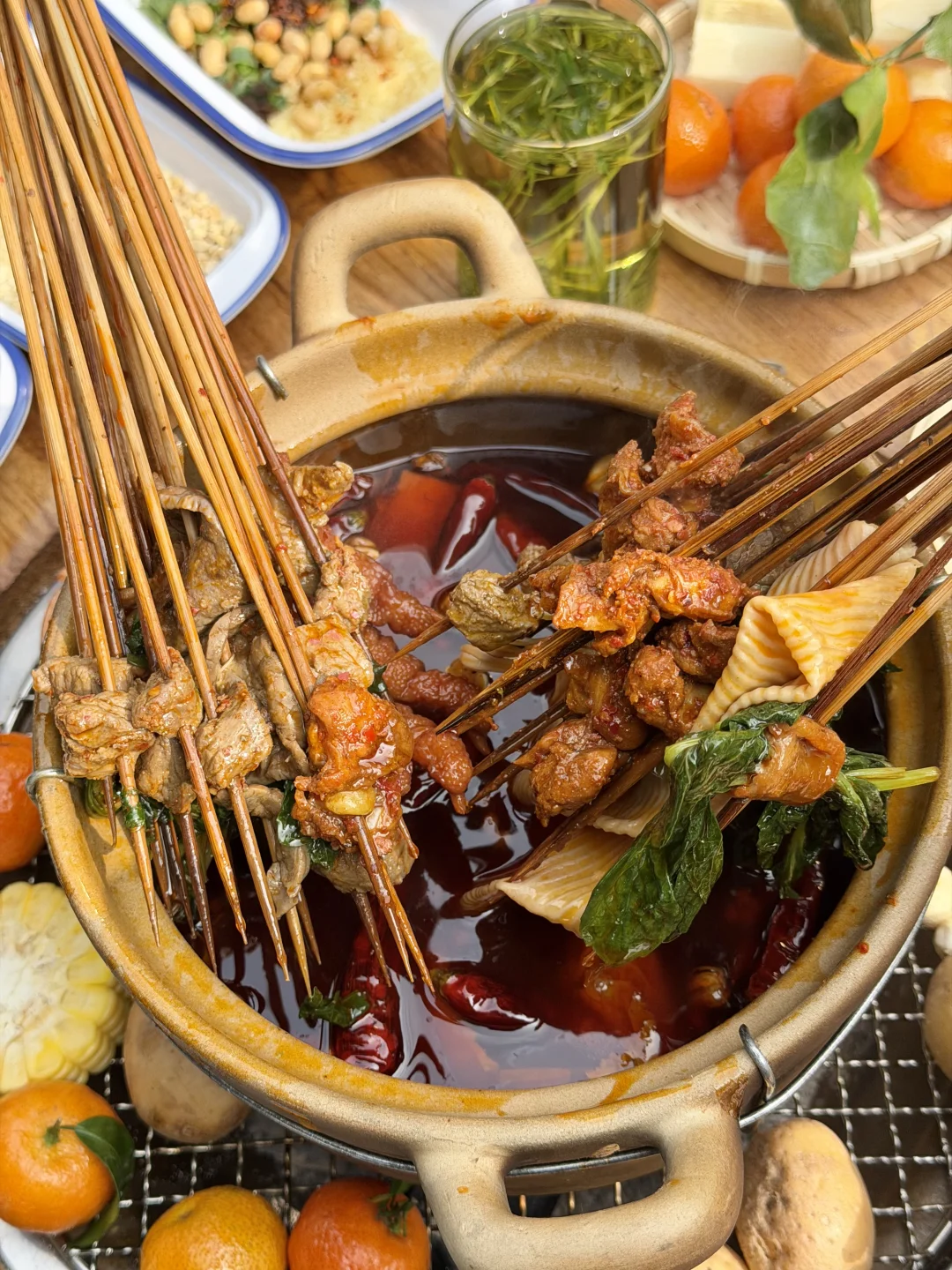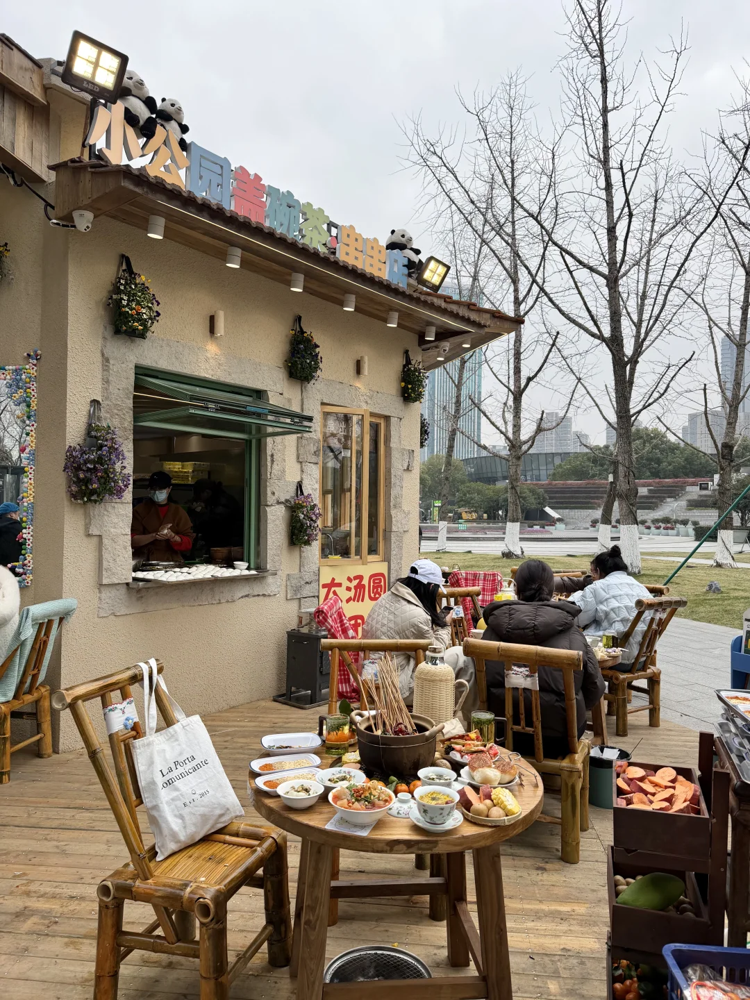 就在钱江世纪城!!老成都盖碗茶也喝到了…小桌子一围,松弛感被拿捏了!各种串串和小吃都很香! 还有火盆烤火太安逸了….👍🏻