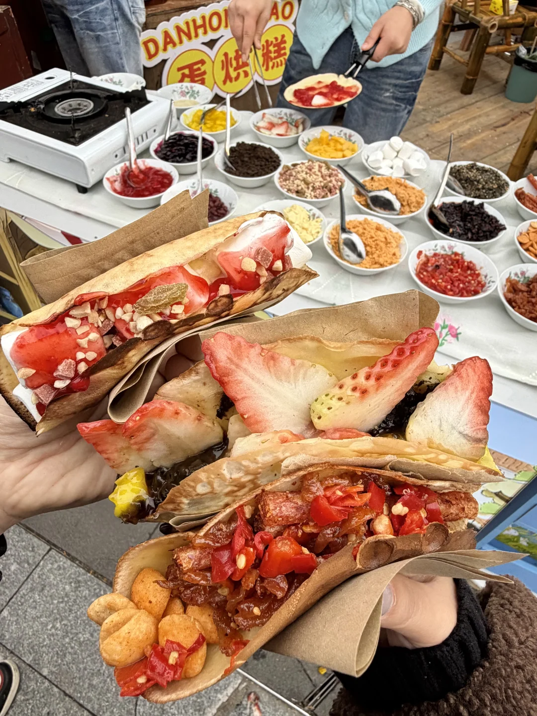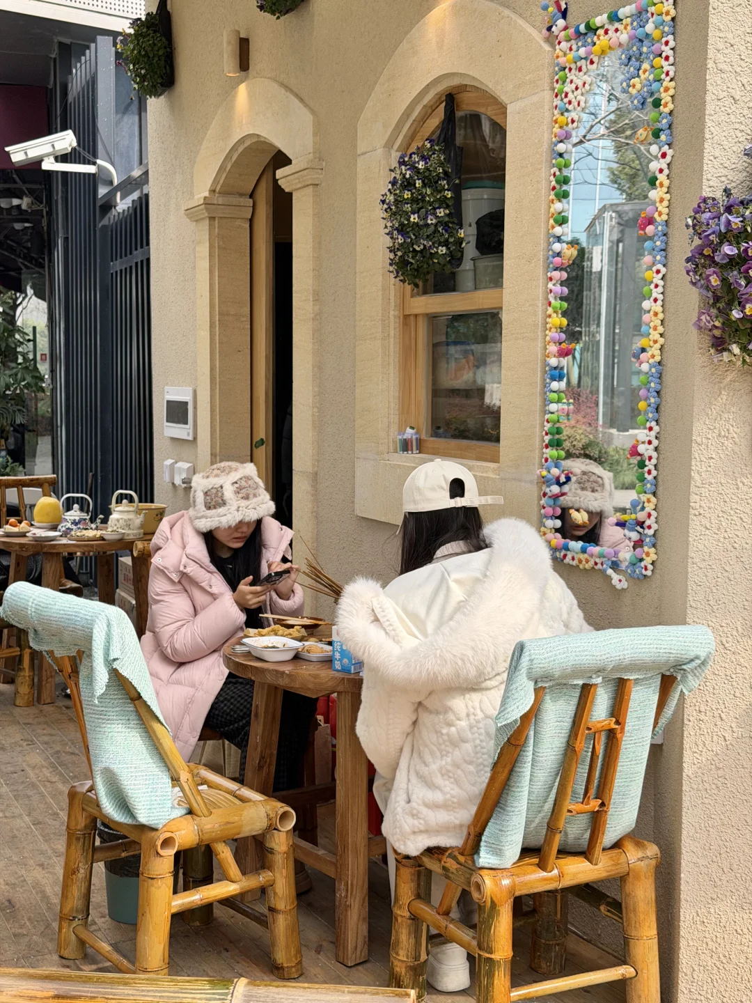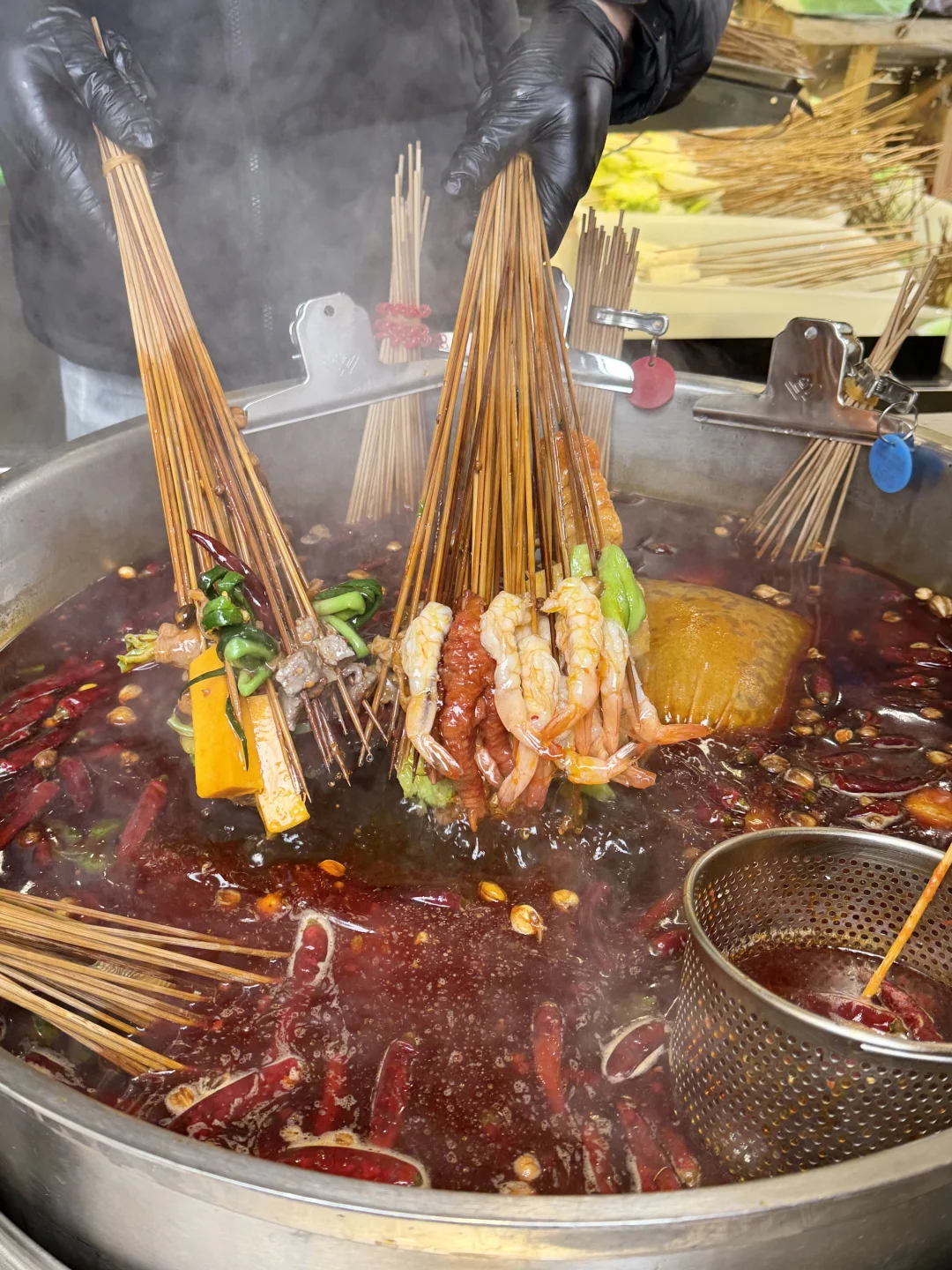 就在钱江世纪城!!老成都盖碗茶也喝到了…小桌子一围,松弛感被拿捏了!各种串串和小吃都很香! 还有火盆烤火太安逸了….👍🏻
