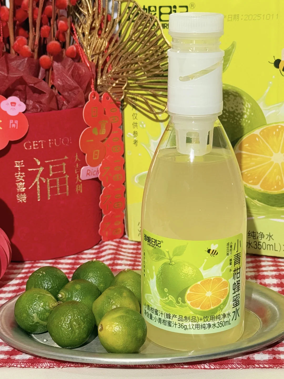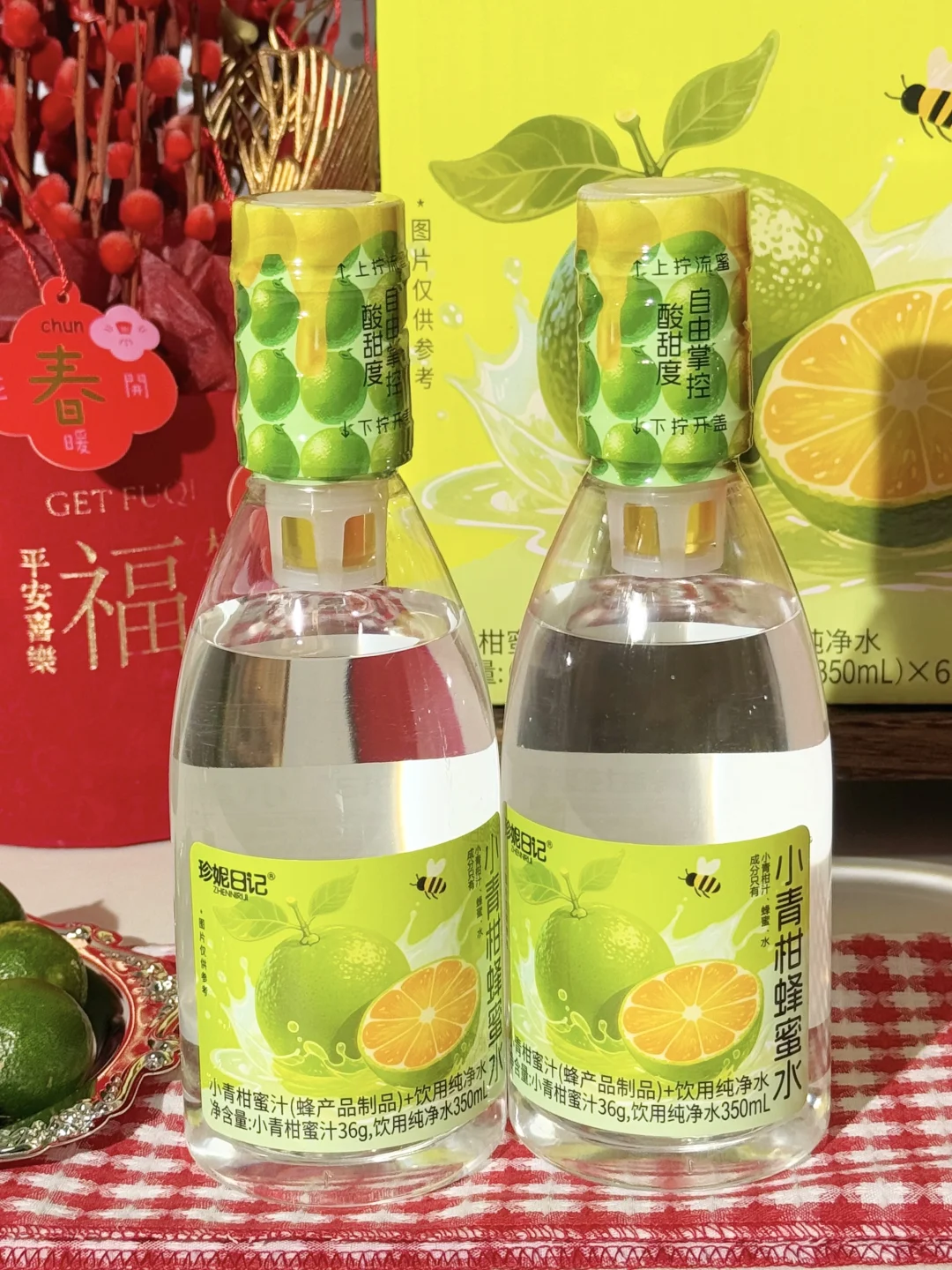 就是这个珍妮日记的小青柑蜂蜜水!! 喝一口真的有被惊艳到!嘎嘎好喝! 入口就是清爽的青柑香!再加上蜂蜜的甜润! 喝起来酸酸甜甜的!果香味好浓郁! 还是蜜仓分离的设计! 喝之前拧开,可以自己调节酸甜程度!! 配料表干干净净!只有蜂蜜、青柑汁和水! 0香精0色素0防腐剂!好喝没负担~ 过年还不知道买啥礼的姐妹真的可以放心囤这个!