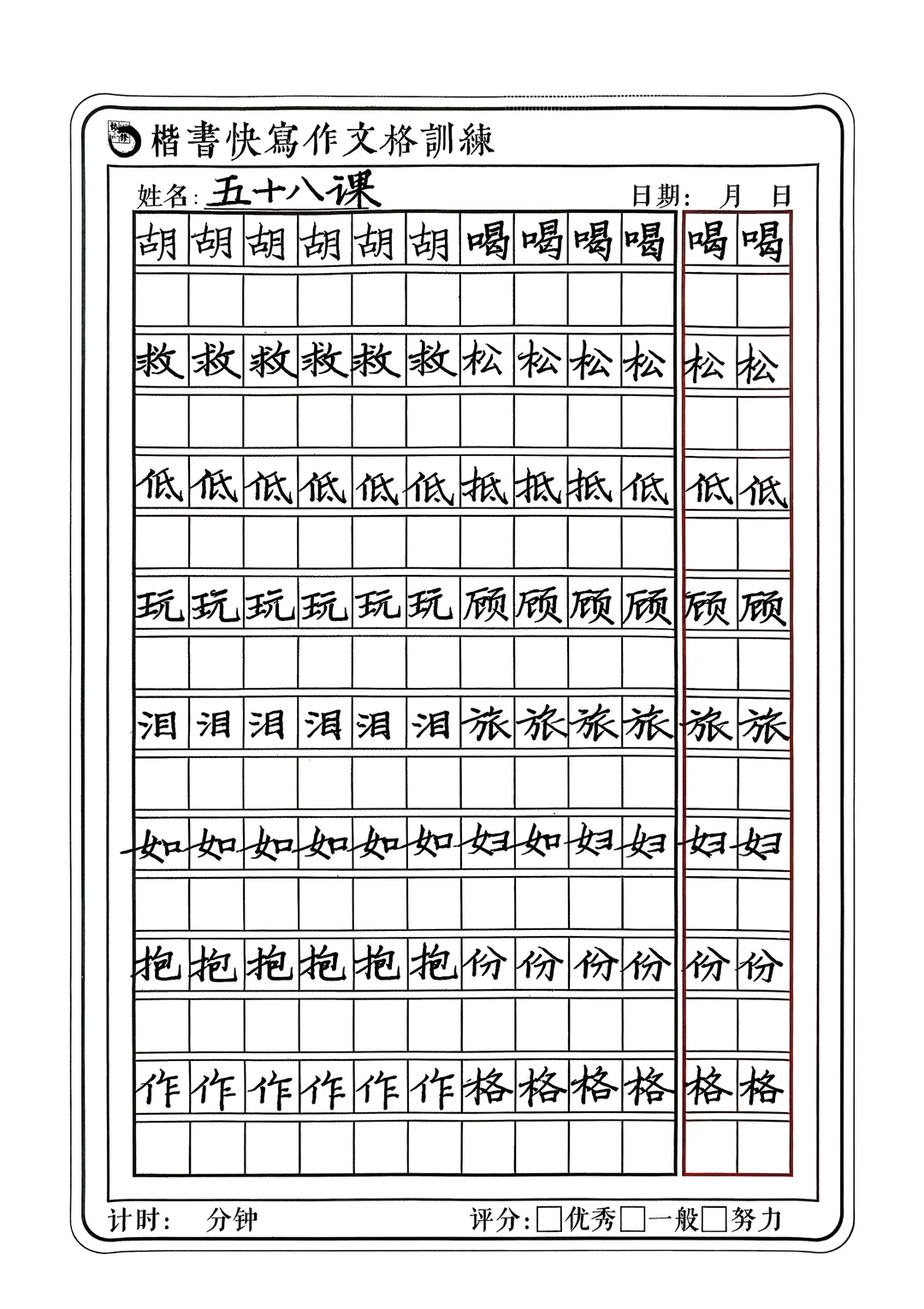 楷书快写