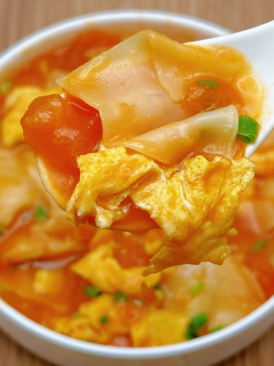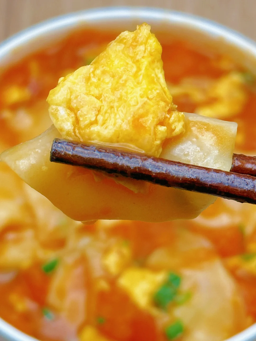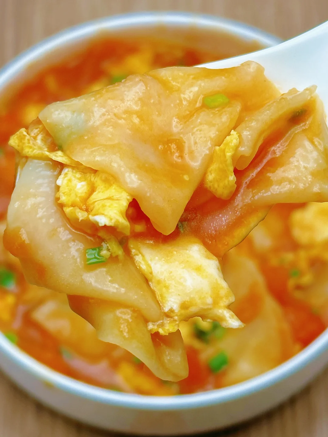 3️⃣下饺子皮搅散防粘,倒入鸡蛋,小火煮 5 分钟,撒葱花就能吃啦!暖乎乎一碗下肚,手脚都不冷了~