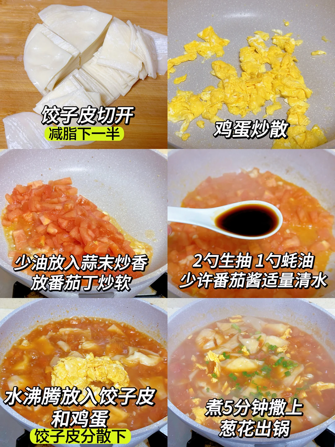饺子皮 + 番茄 + 鸡蛋 + 葱蒜