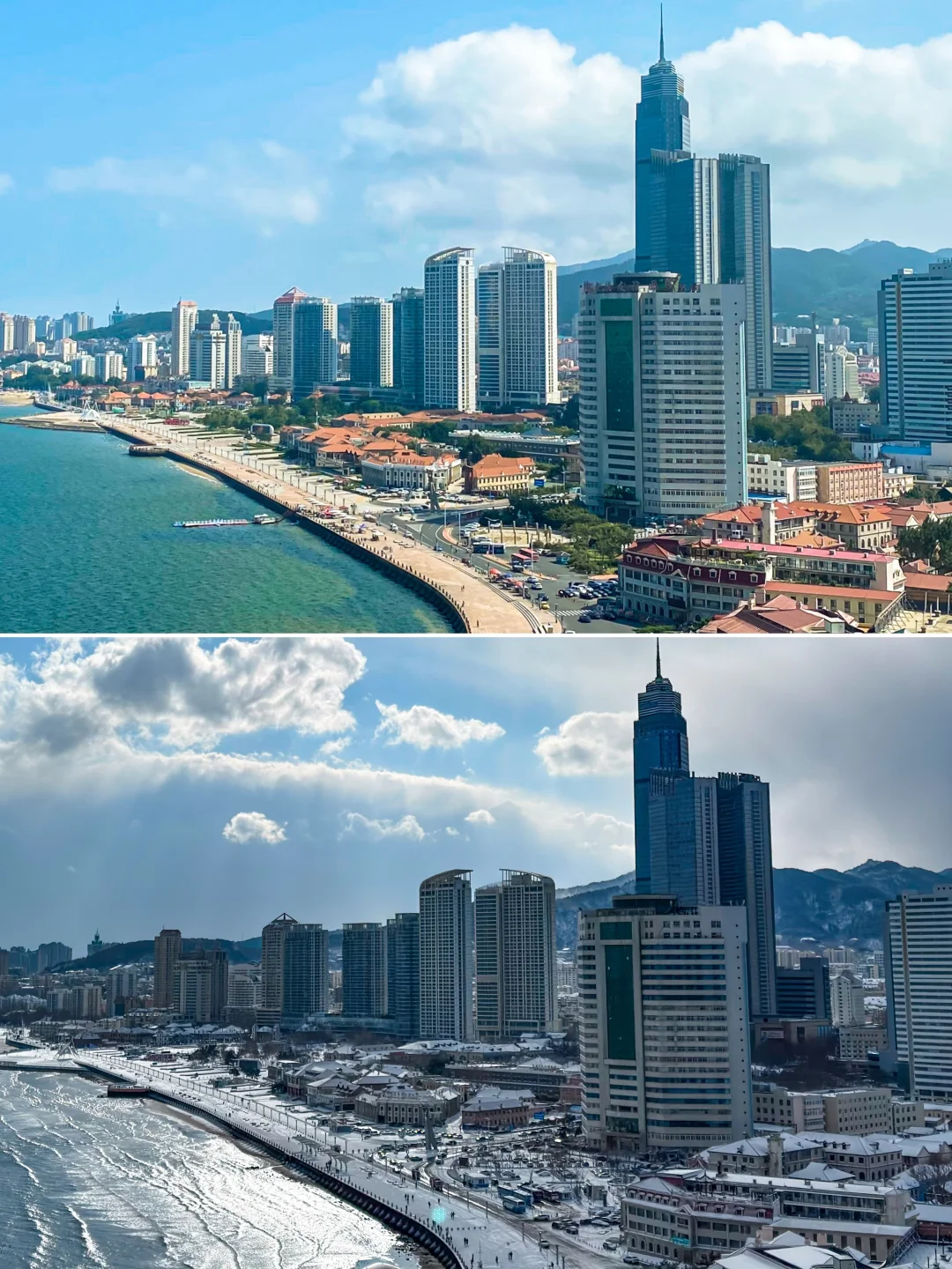 🈶图3从烟台山顶看两个季节的烟台