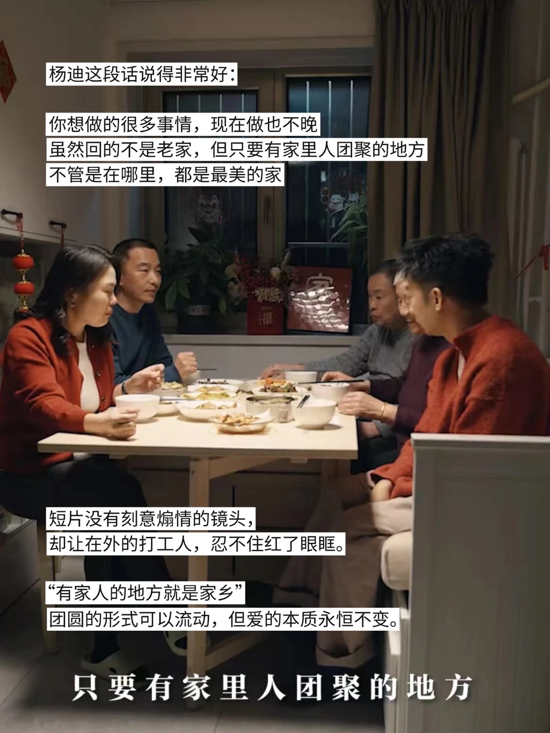 这轻轻一句,温柔解构了传统“乡土中国”的执念,尤其对于新一代在城市扎根的年轻人来说,这种诠释既是一种安慰,也是一种解放——团圆的形式可以流动,但爱的本质永恒不变。
