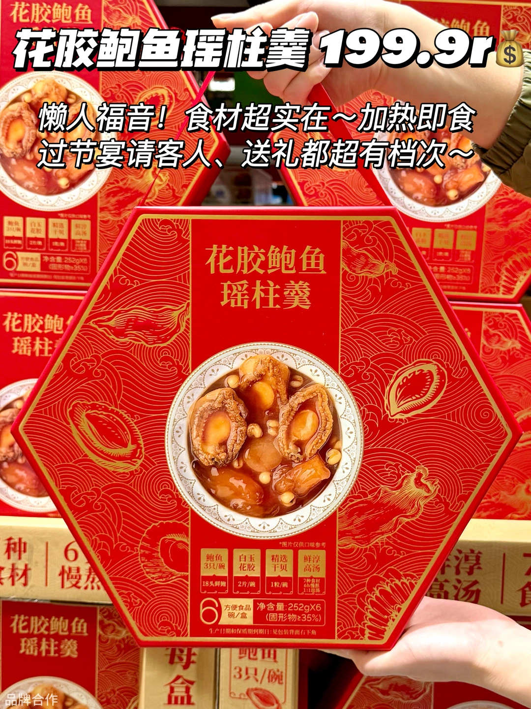 简直是懒人福音!每碗都有3只鲍鱼,还有白玉花胶和大颗干贝,食材超实在~加热即食,过节省时省力,宴请客人、送礼都超有档次~