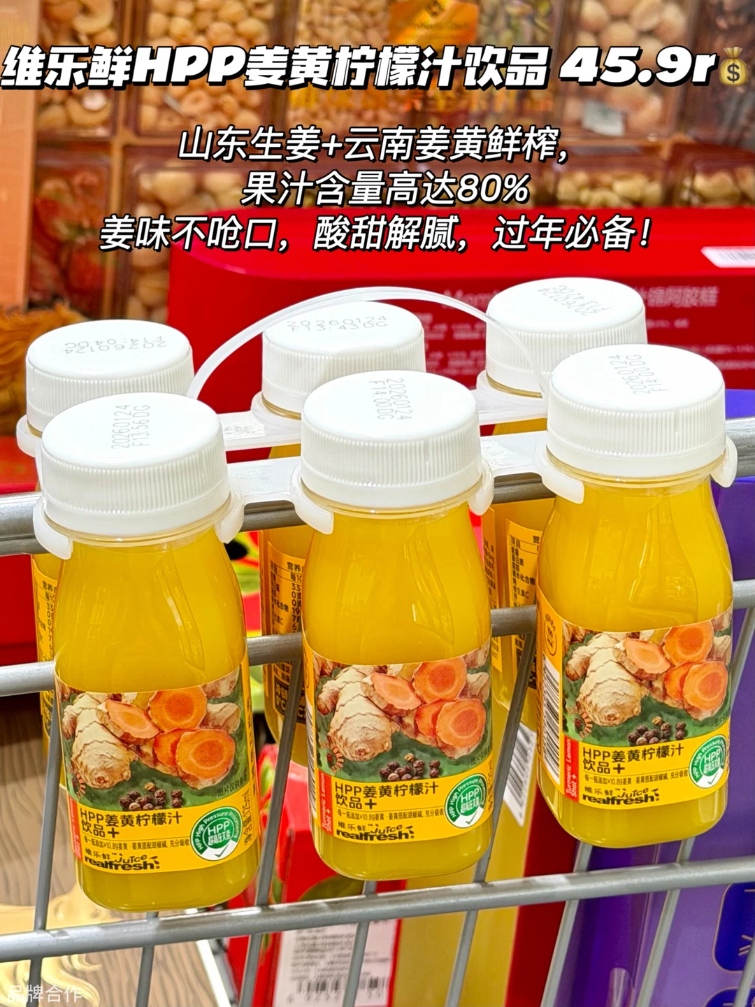 山东生姜+云南姜黄鲜榨,果汁含量高达80%姜味不呛口,酸甜解腻,过年必备