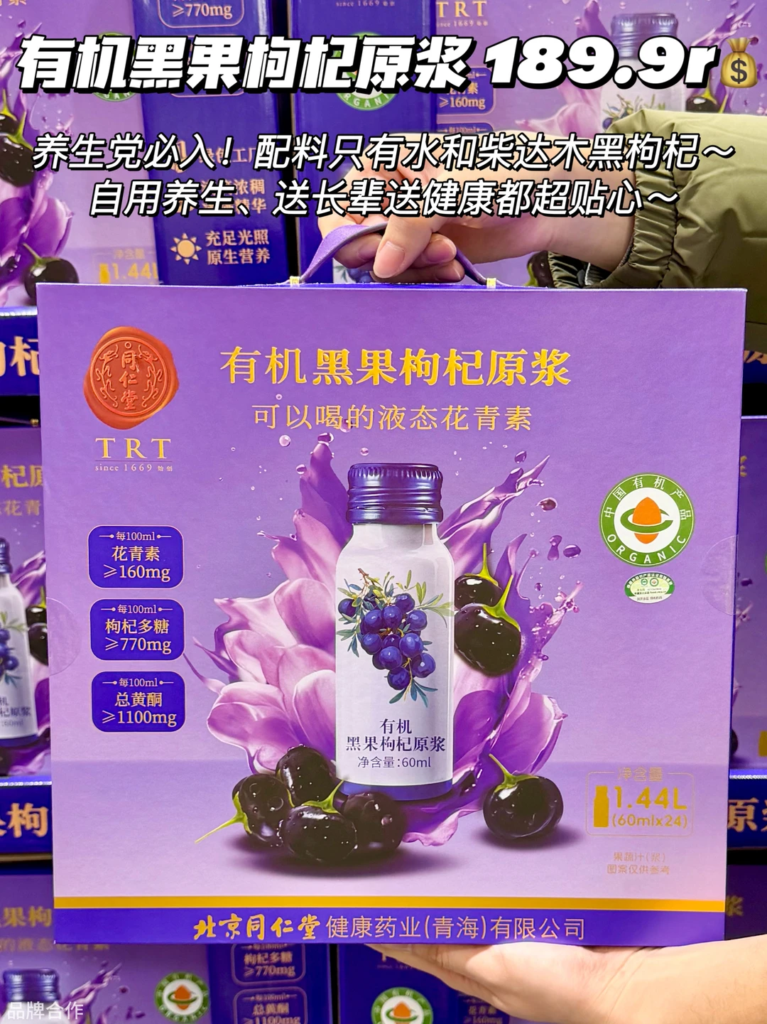 养生党必入!配料只有水和柴达木黑枸杞~喝起来酸甜浓郁,兑水或加酸奶都绝,自用养生、送长辈送健康都超贴心~