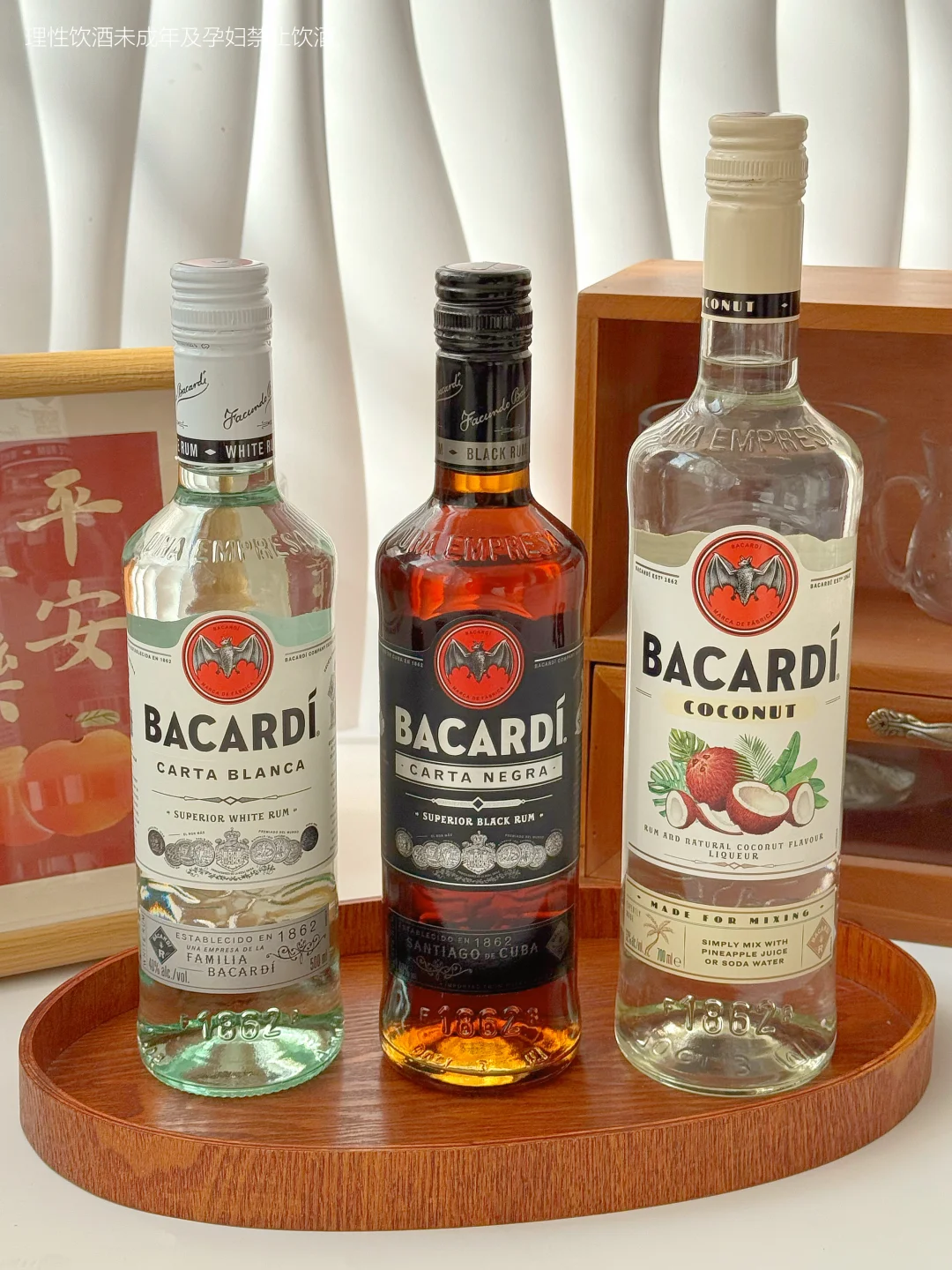 ❤️基酒用的是我一直很爱的百加得白朗姆、椰子朗姆和黑朗姆!家庭调酒有这三只基酒就够了!