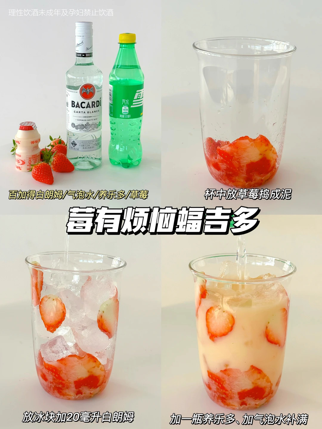 ✅莓有烦恼蝠吉多(草莓➕养乐多➕八分满气泡水➕20ml百加得白朗姆酒)