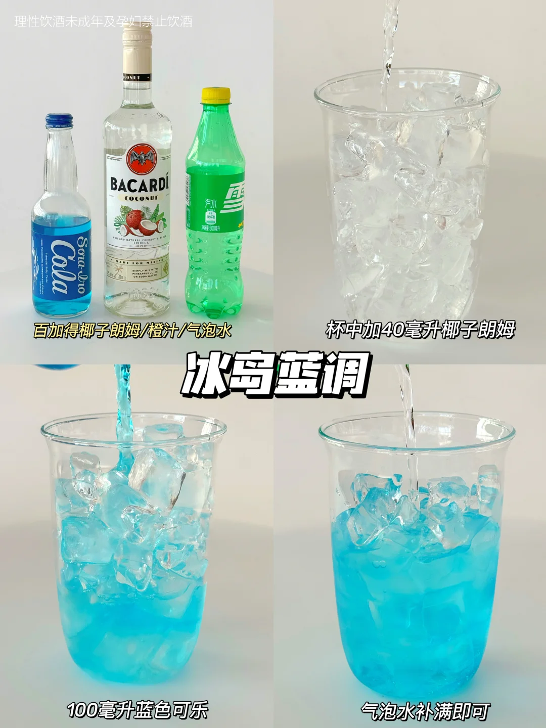 ✅冰岛蓝调(百加得椰子朗姆➕蓝色可乐➕气泡水)
