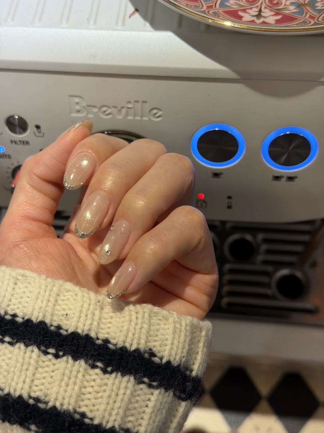 每一次换指甲前,都是收藏十几款,准备好好挑一个,到了现场,总会突然刷到第二十款,最后根据心情再微微调整,本来准备做个红色法式,没想到最后搞了个这么闪的过年😆