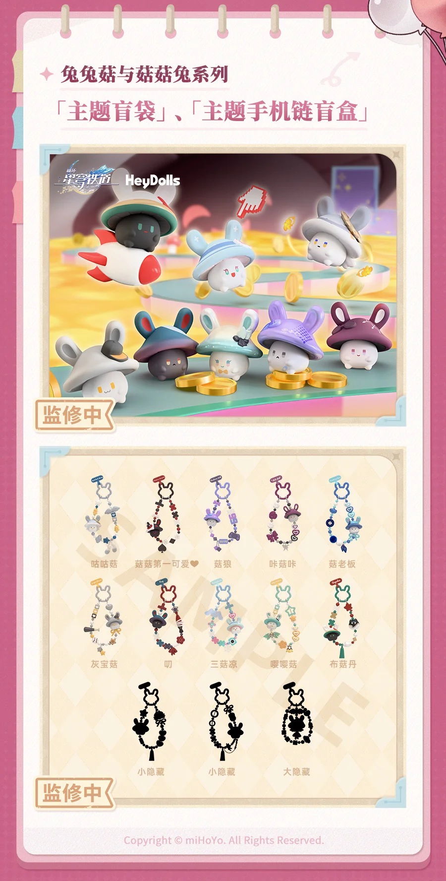●《崩坏:星穹铁道》× HeyDolls「兔兔菇与菇菇兔」主题盲袋、「兔兔菇与菇菇兔」 手机链盲盒