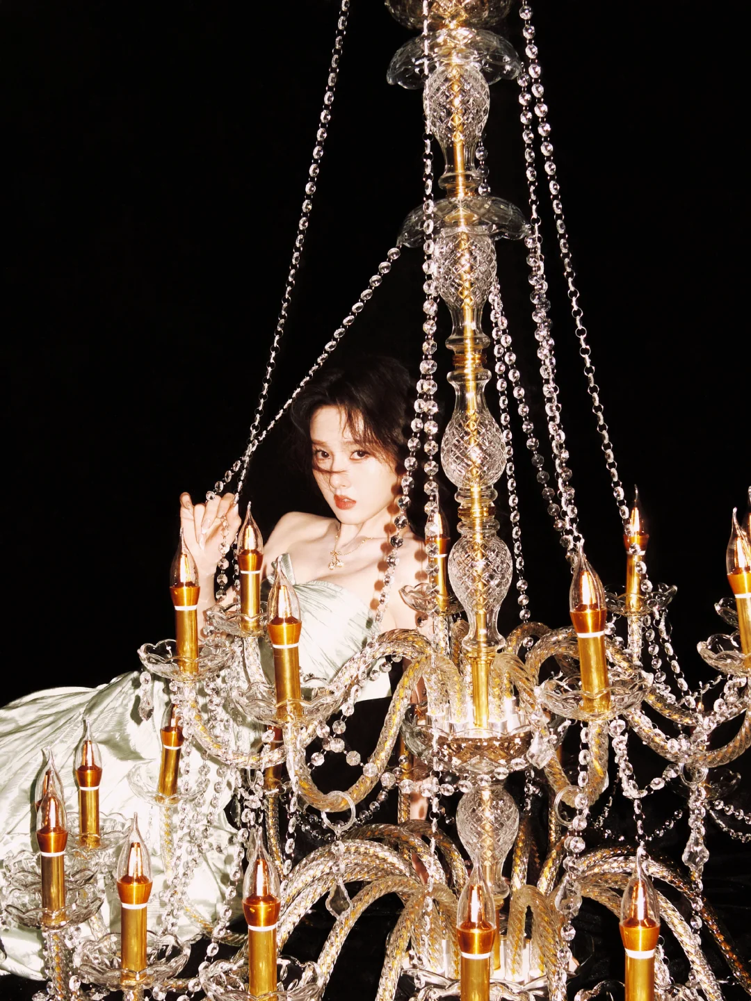 📷复古名伶风格写真参考 现在的很多写真已不再是单纯的人像记录,而是一场关于自我表达的视觉叙事,就像宋祖儿的这组照片。置景里的幕布不再是普通背景,而是束缚的具象化。她用剪刀剪开幕布,就像是打破束缚的勇气。吊灯、烛台和酒杯塔,营造出复古派对的松弛氛围,成为她尽兴做自己的情绪注脚。这组写真从记录美貌变成了传递态度,照片似乎在传递:真正的美,从来不是被定义的样子,而是挣脱束缚后,尽兴活成自己的模样。 摄影师:范一