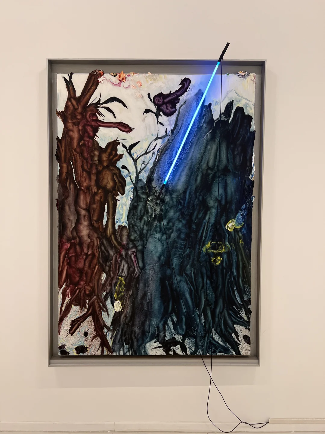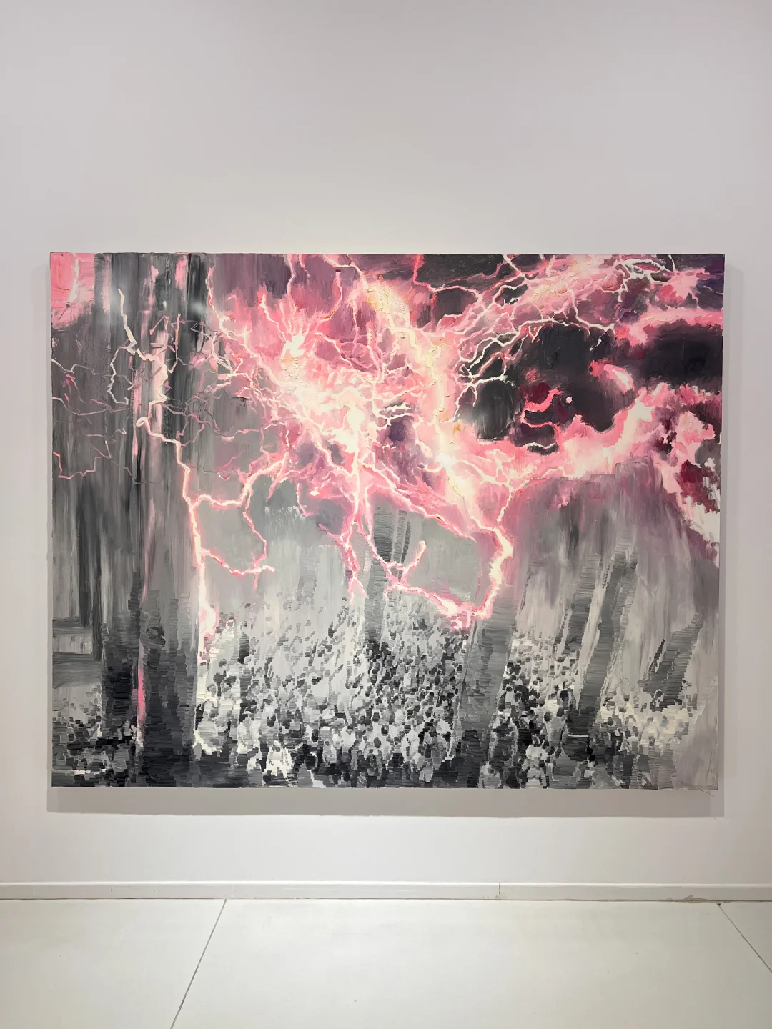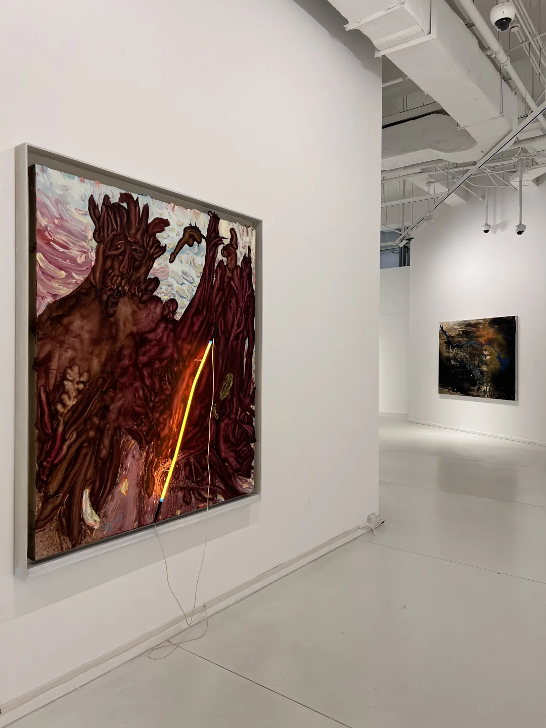 春美术馆新展来了! 这次直接是3️⃣个个展组成的 1️⃣ 陈春木个展 进入展厅就是陈春木的大型艺术装置「如若初见」 木头、二手衣物、树脂,、霓虹灯… 从原有语境中“断裂”出来的碎片 重新建立新的🕸️… 2️⃣ 刘正勇个展 很强的概括力和狂拽的笔触 远看才能看出人脸的轮廓 3️⃣ 陈鸿志个展 再次看到陈鸿志的画还是很震撼 密密麻麻的马赛克人组成的庞大场面 和光影制造的裂隙 很有压迫感 3个人的画风莫名的很搭 可以和外滩的展览一同参观~