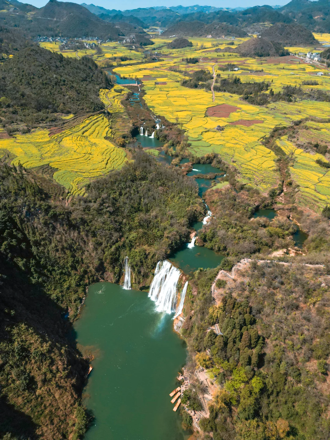 飞瀑+花海双buff!西门进→徒步观瀑→东门观光车返回,索道俯拍碧水金毯,水雾里还能偶遇彩虹🌈