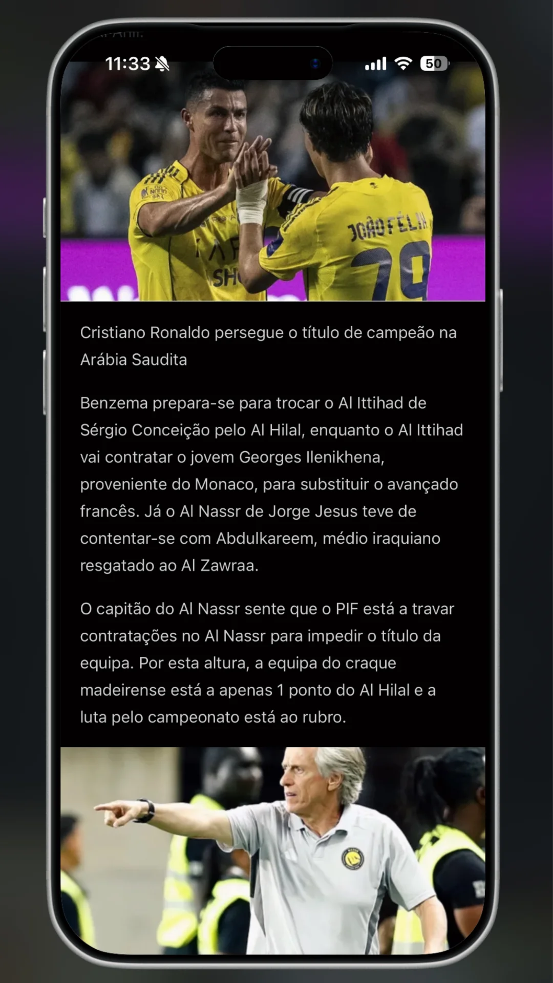 🔶 正因如此,这位前锋拒绝参加今天下午对阵利雅得体育的比赛,最终豪尔赫·热苏斯率领的球队以1-0获胜。尽管 C罗仍然专注于赢得沙特阿拉伯的第一个联赛冠军以及实现个人 1000 球的目标,但他仍然觉得应该抗议,因为他认为俱乐部正在遭受不公正的待遇。
