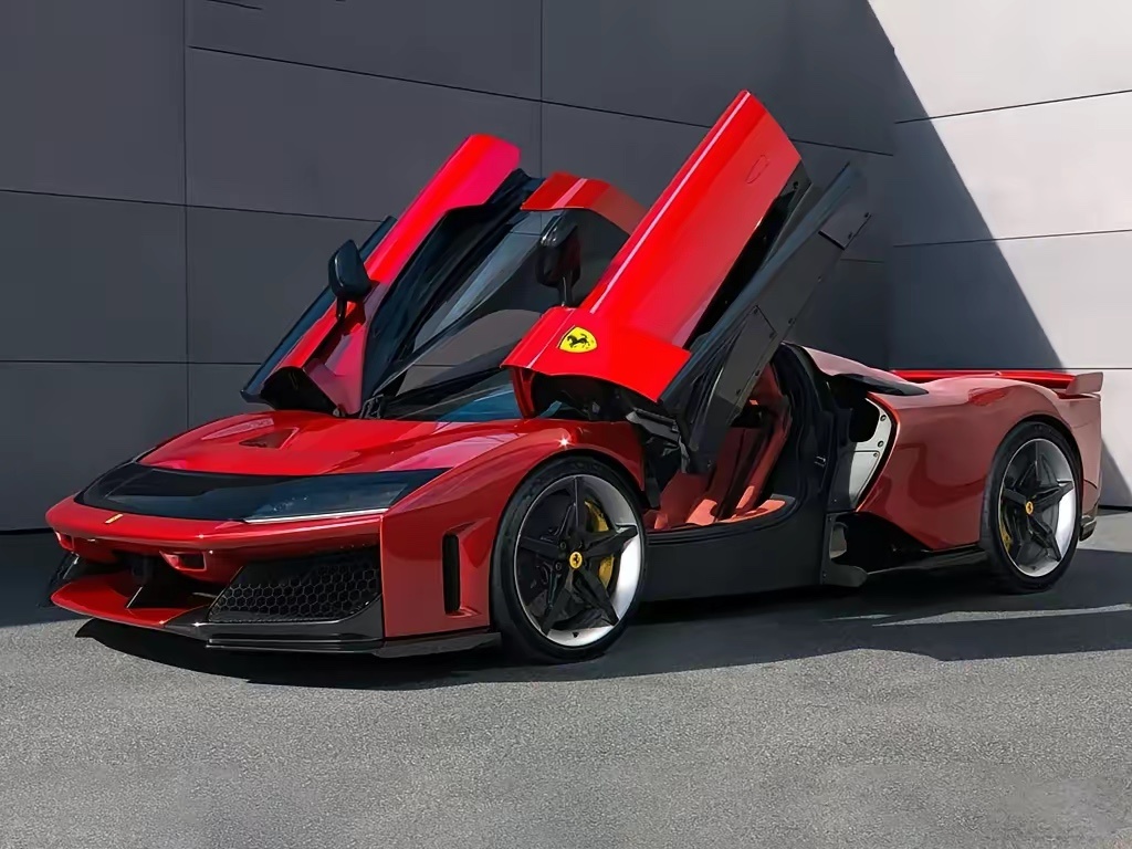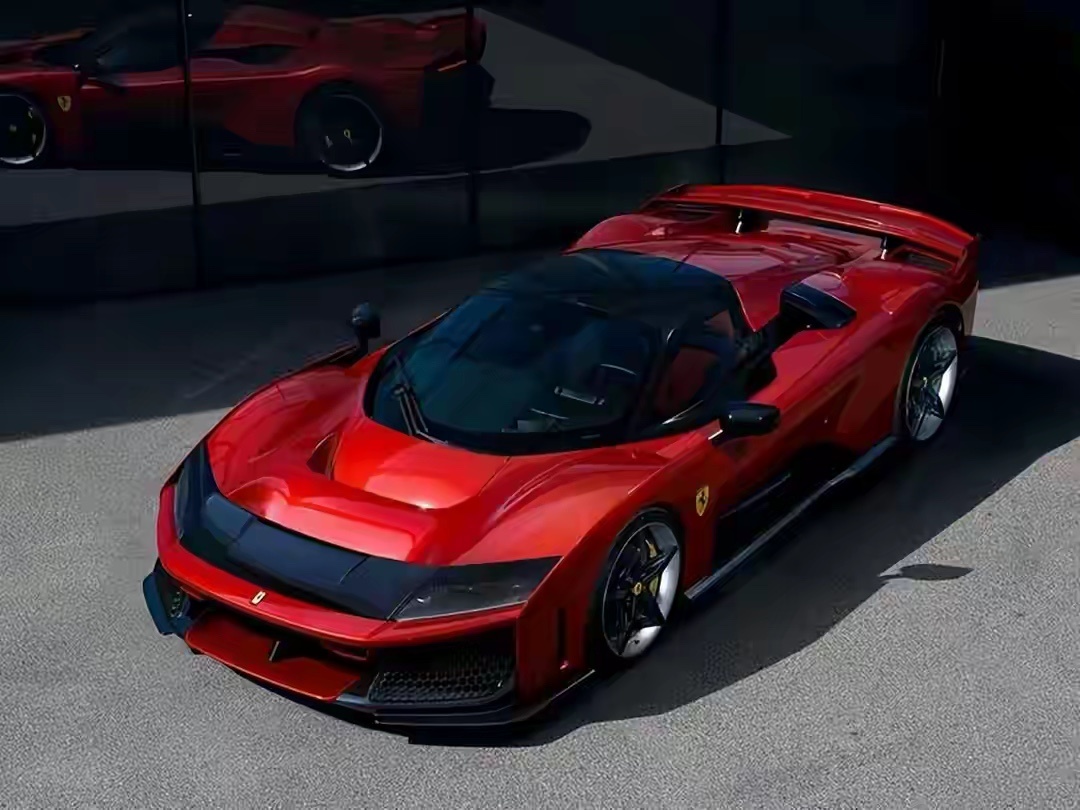 跟大家直白说吧,法拉利F80就是把F1赛车直接改成了能上路的车。首先看性能,它的3.0T V6发动机加三台电机,能爆发出912马力。这是什么概念?0-100km/h加速只要2.2秒,比很多电动车还猛。从静止到200km/h也才5.75秒,最高时速能跑到390km/h,速度快到让人头皮发麻。设计上也全是为了速度服务:车身用了大量碳纤维,又轻又结实。车头巨大的进气口藏着F1同款技术,能自动调节,让车在高速时“吸”在地上不飘。车门是向上开的蝴蝶门,仪式感直接拉满。车尾的双层尾翼和扩散器也会在高速时自动工作,让车跑得又稳又快。坐进车里,全是Alcantara翻毛皮和碳纤维,包裹感超强的赛车座椅,方向盘上集成了所有控制按钮,让你全程只需要专注开车。