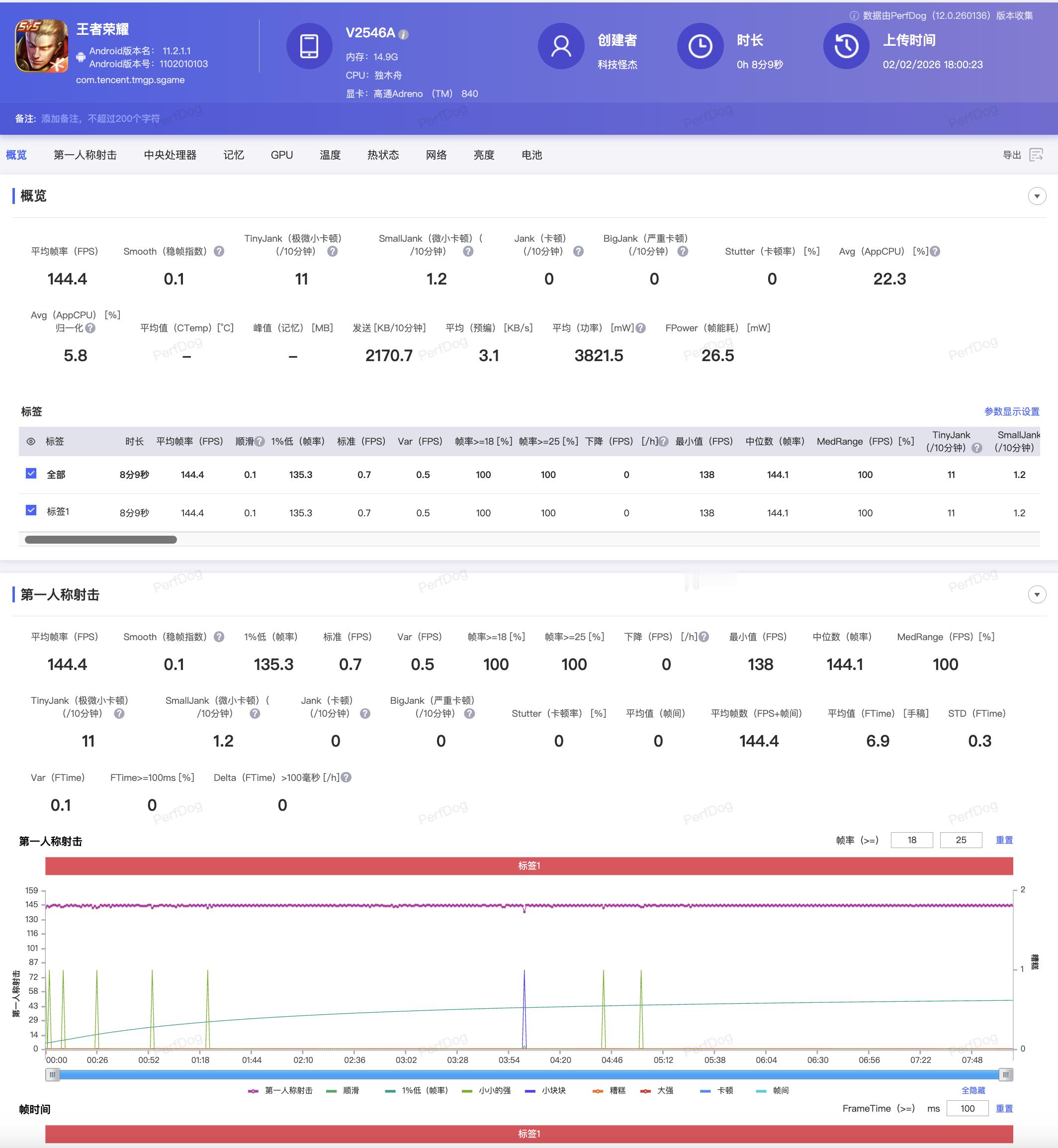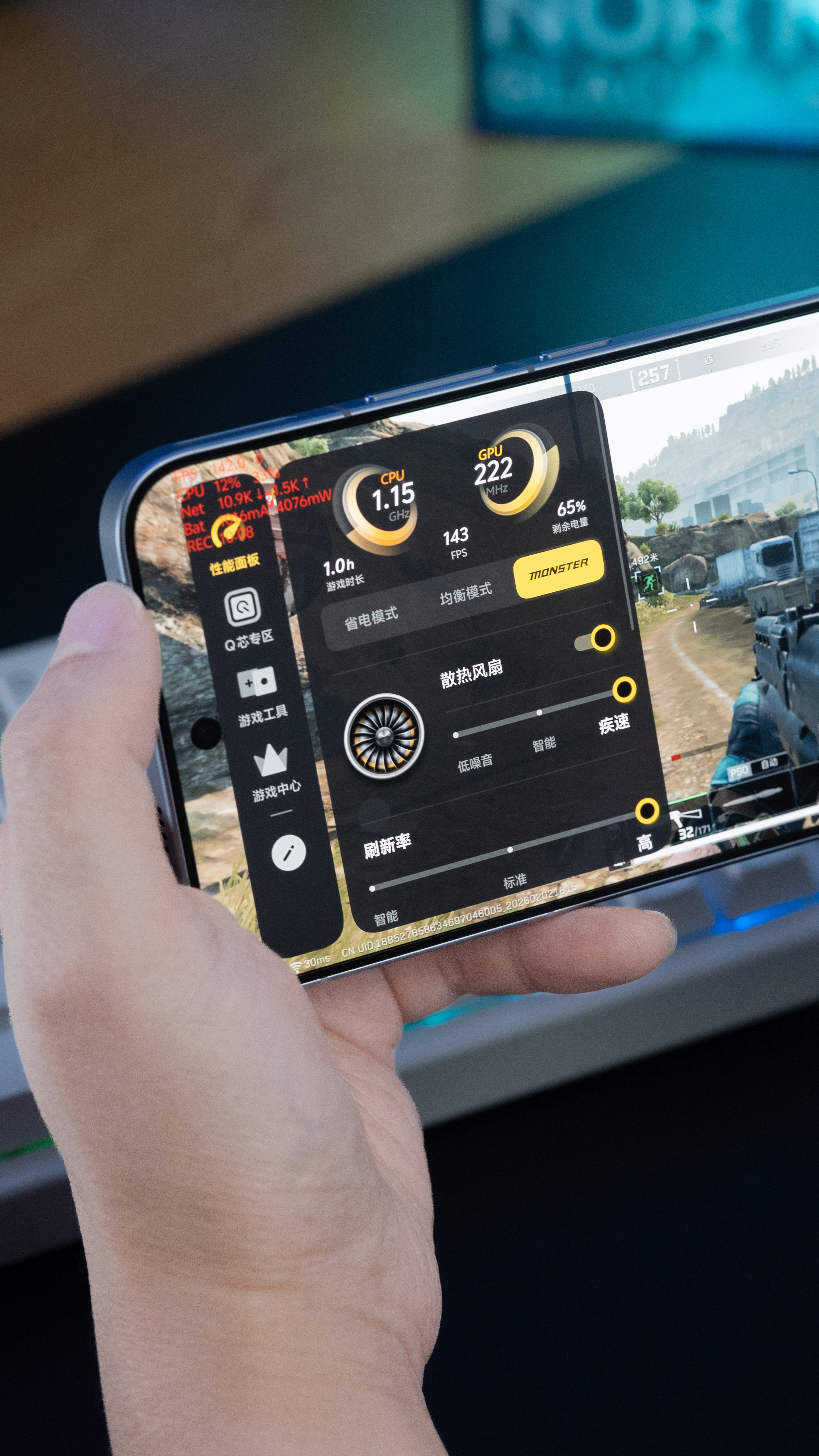 我自己上手实测,《王者荣耀》直接锁死在 144 帧,整局帧率线平得跟尺量的一样。《和平精英》更夸张,143.7 帧那种稳法,就是你怎么甩枪、怎么转视角它都纹丝不动。