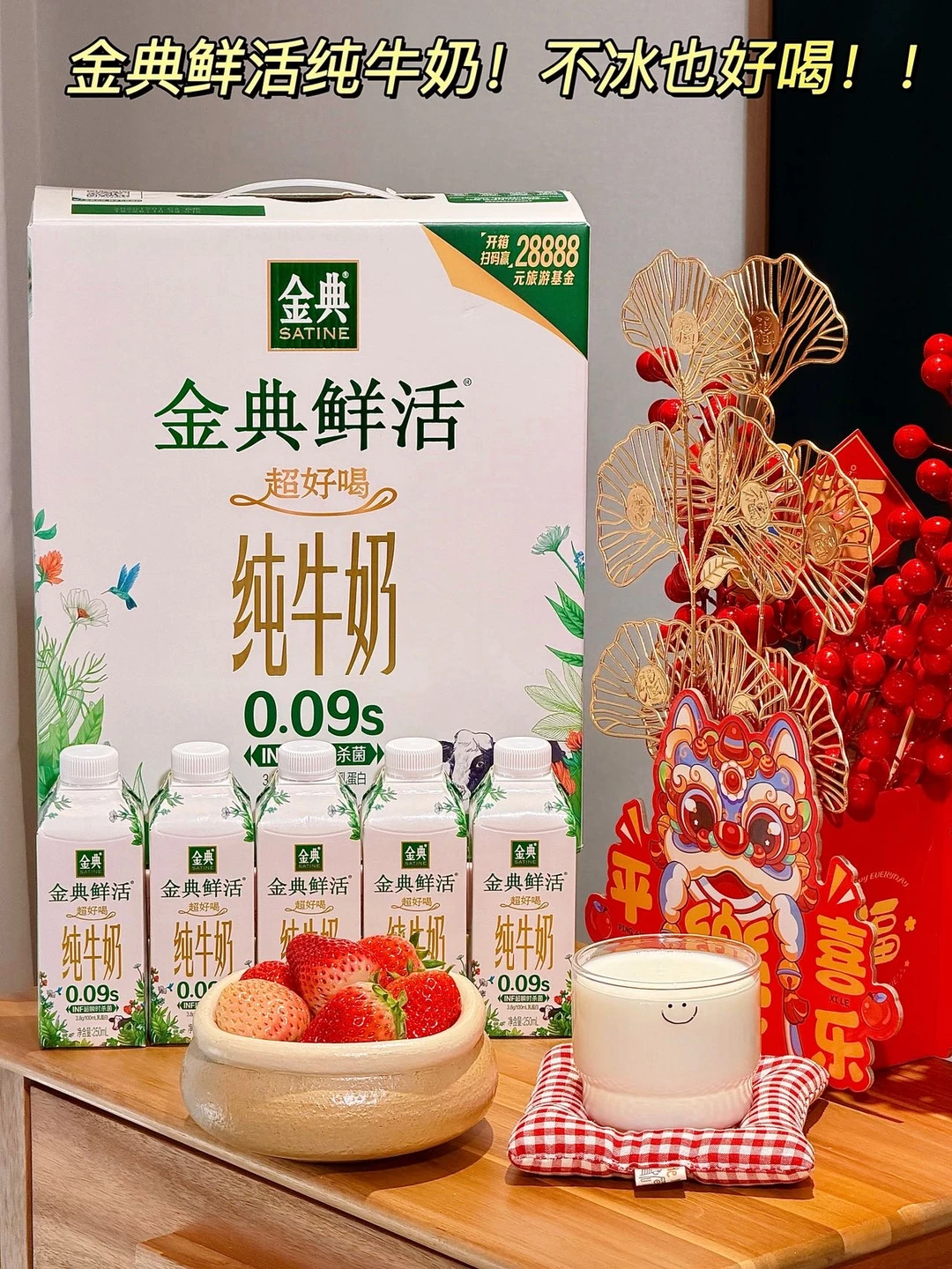 网上冲浪刷到好多次的金典鲜活纯牛奶 抱着试试的心态买回来了! 谁想到这常温奶居然比鲜牛奶还上头!! 真的颠覆我对常温奶的认知! · 入口是纯纯的生牛乳香气 丝滑得像抿了一口云朵⛅️ 回甘还带着淡淡的奶香!回味超棒! 口感口味一点不输鲜牛奶🥛 · 这款常温喝就超舒服!冬天喝着也不冰胃! 后来才懂它好喝的门道! INF0.09秒超瞬时杀菌工艺也太牛了 快到奶味都反应不过来就被锁住了 难怪米其林大厨都认证👀 纯纯靠工艺锁鲜!没有多余添加! 配料表也是干干净净只有生牛乳! · 自从买了这个好久都没喝过拿铁了 直接加咖啡就能冲出简易拿铁! 办公室下午茶吨一口瞬间清醒 早八人早餐搭配吐司!营养早餐有了🍞 马上过年啦!新年囤货必须给家里安排上! 营养健康又美味!大人小孩都爱喝! 送礼也超有面儿!购买也贼简单 👉在金典官方旗舰店就可以购买 电子闺蜜们快去买买买!!🛒