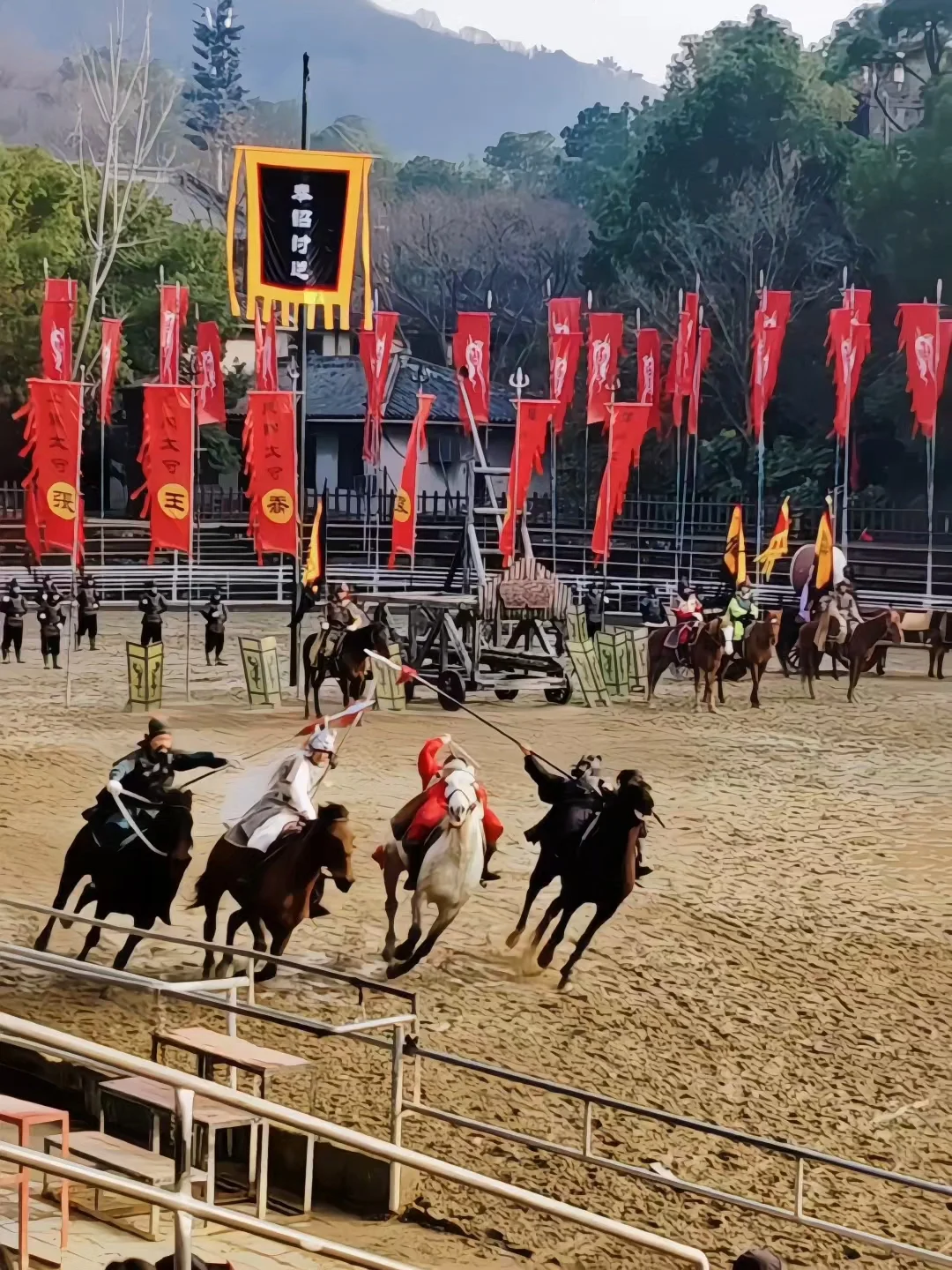 20多匹战马奔腾驰骋,刀光剑影间尘土飞扬,还原虎牢关经典pk,“马年看马战”寓意“龙马精神”,小丸子看得热血沸腾,战场上马蹄震地真的震撼。
