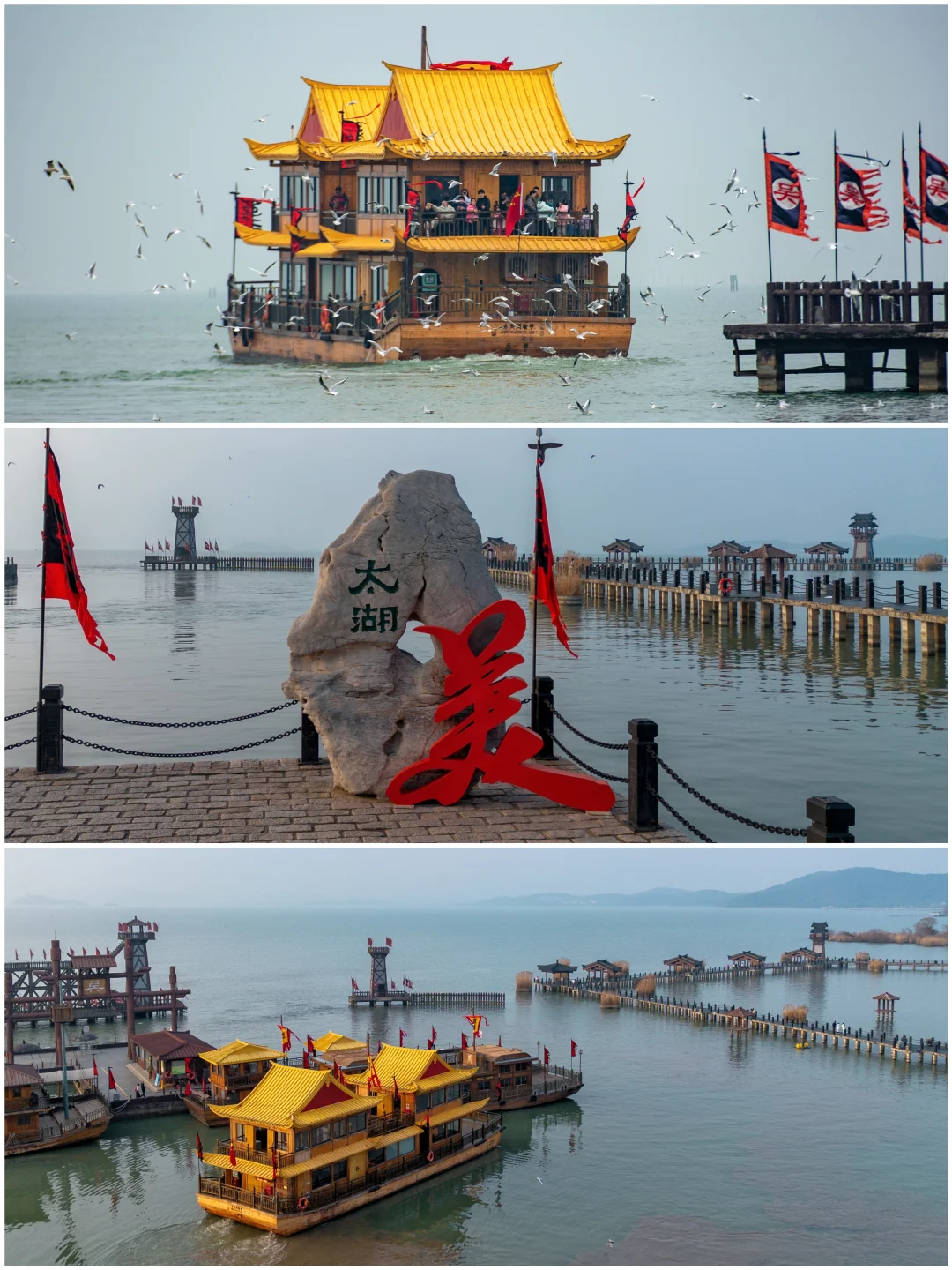 🧧2026马年新春,红墙黄瓦挂上红灯笼,太湖烟波映着烟花色,白天看马战表演、与三国水浒英雄互动,晚上赏打铁花、逛灯火市集,人少景美还能拍国风新年照,快带娃来过一个有仪式感的古风春节啦~