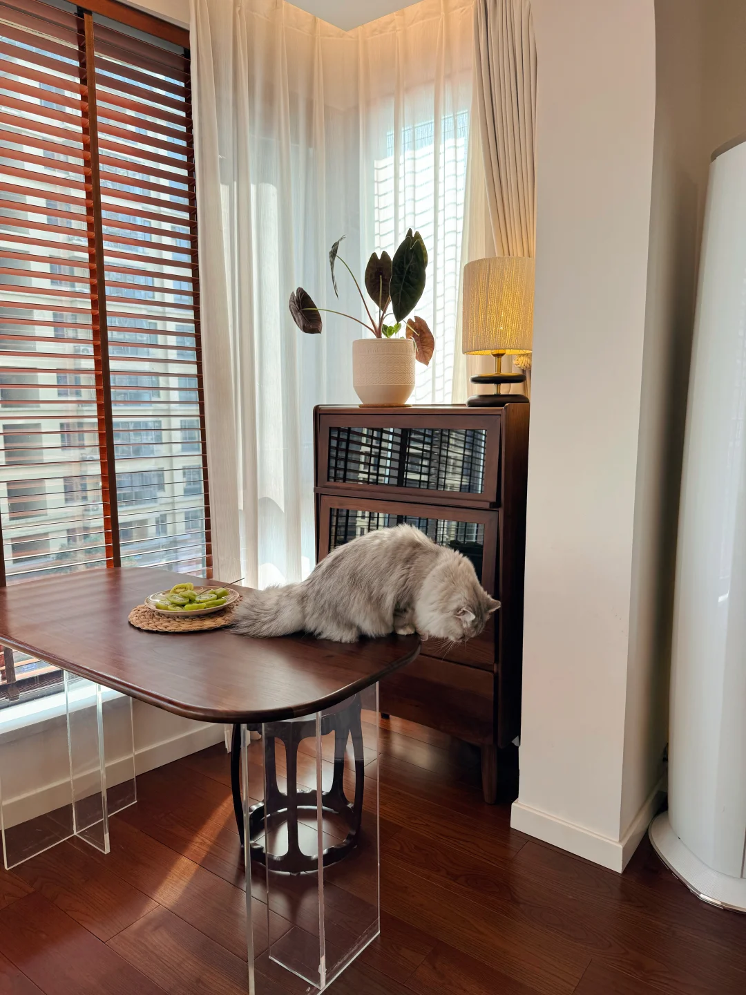 没有复杂的造型,删繁就简,实木烤漆,也藏着利落温柔,好的材质本身就能轻松拿捏简约质感。