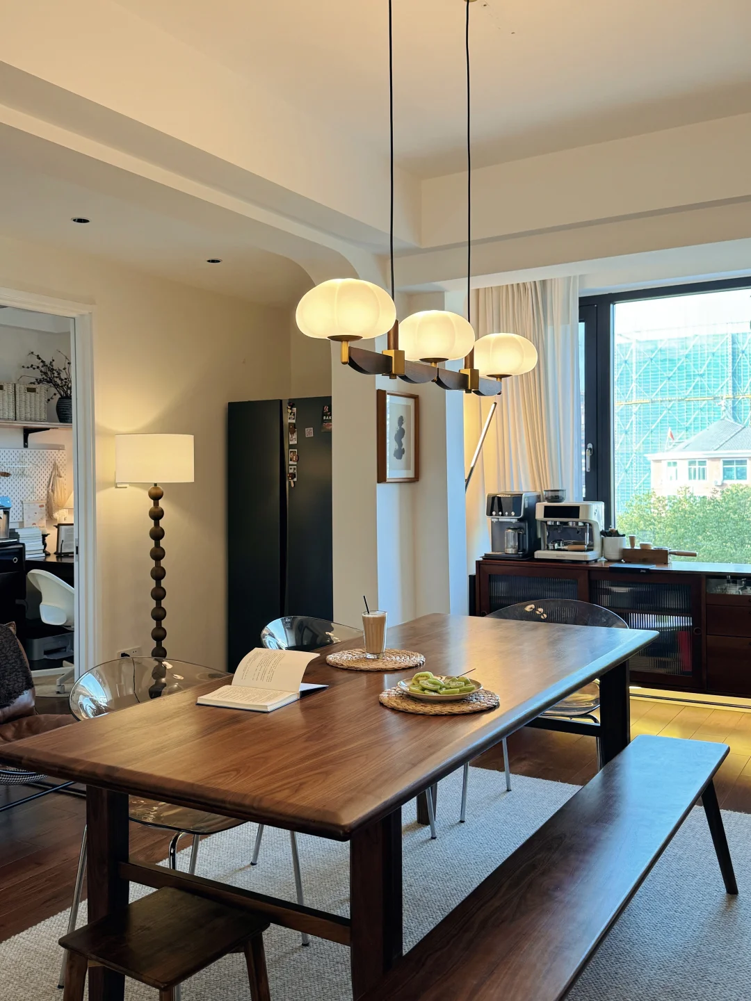后期橡木以及樱桃木的加入,也与之呼应,让空间色调和谐统一,温馨不压抑,治愈感拉满。