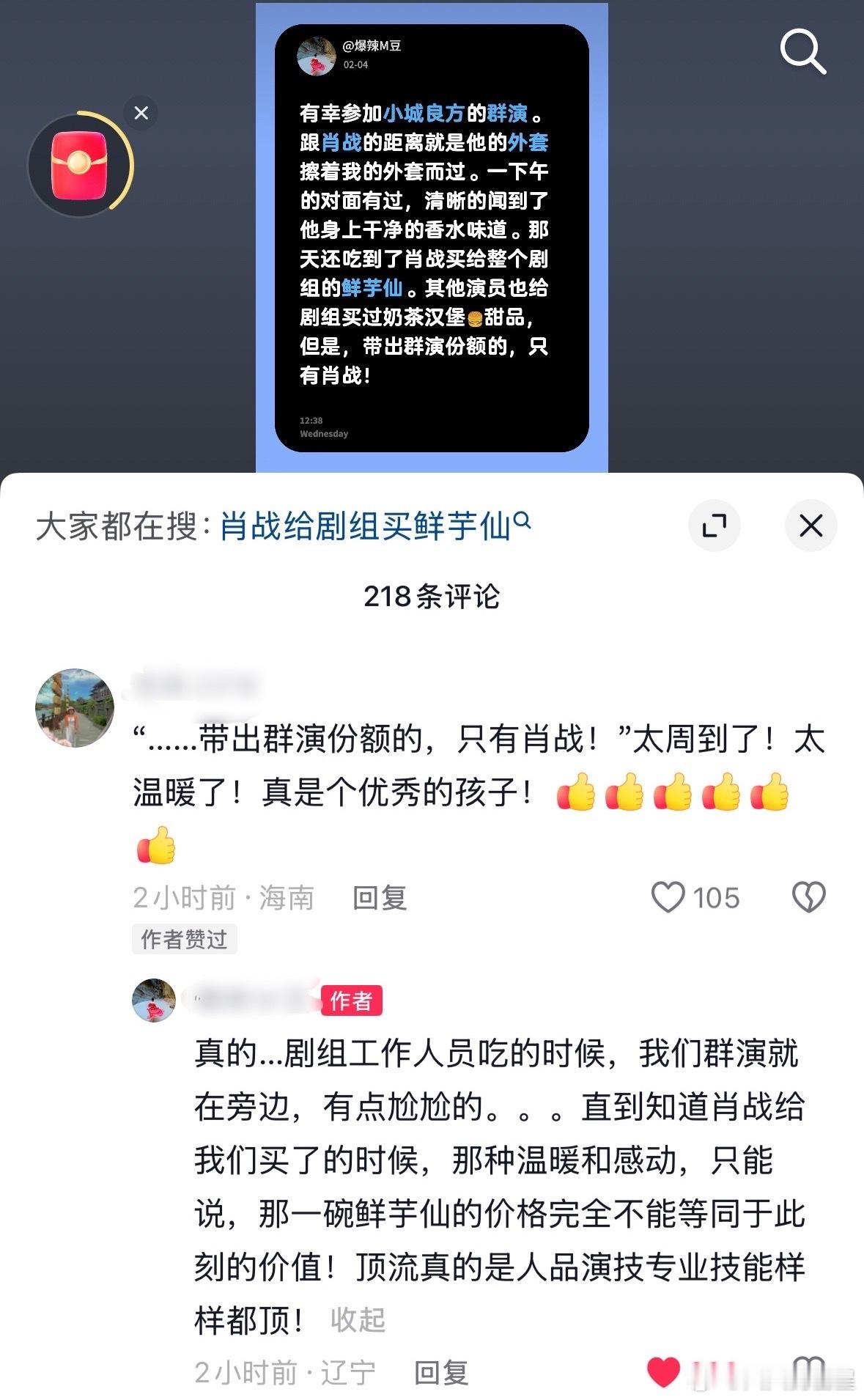 肖战的每次请客都带群演份额小城良方群演的肖战美谈群演说肖战每次请客都带群演份额