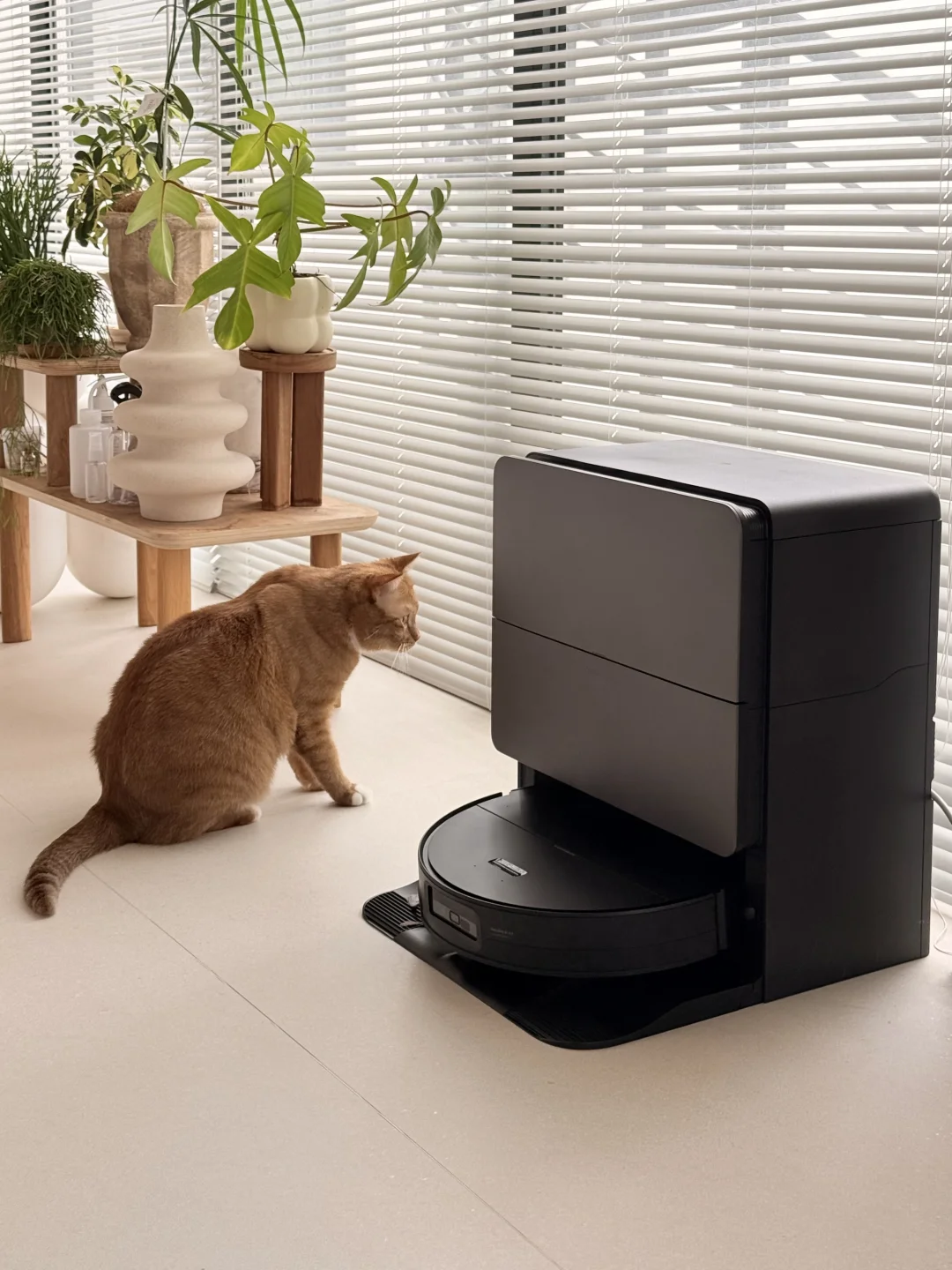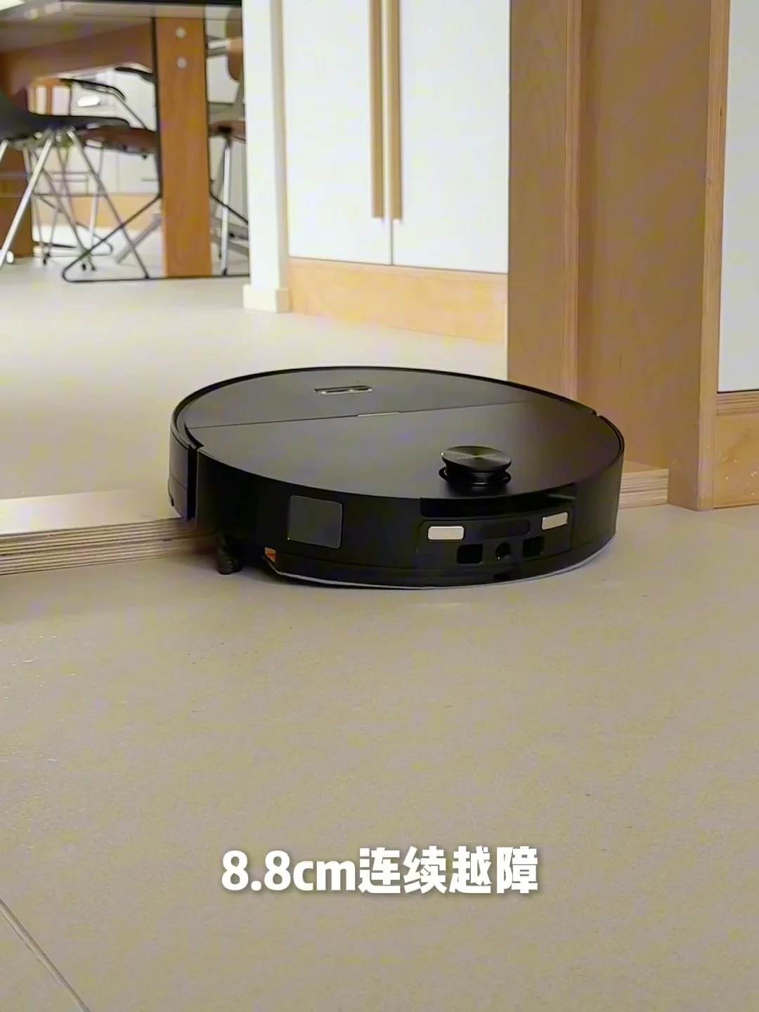 经过浴室挡水条、衔接处高低差时平稳流畅。即便被椅腿暂时围住,也能优雅转身,那种不慌不忙的脱困力,让它在家中的行走充满了自信。