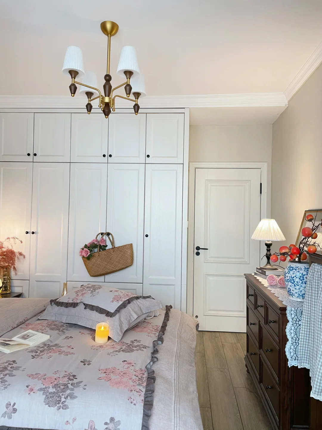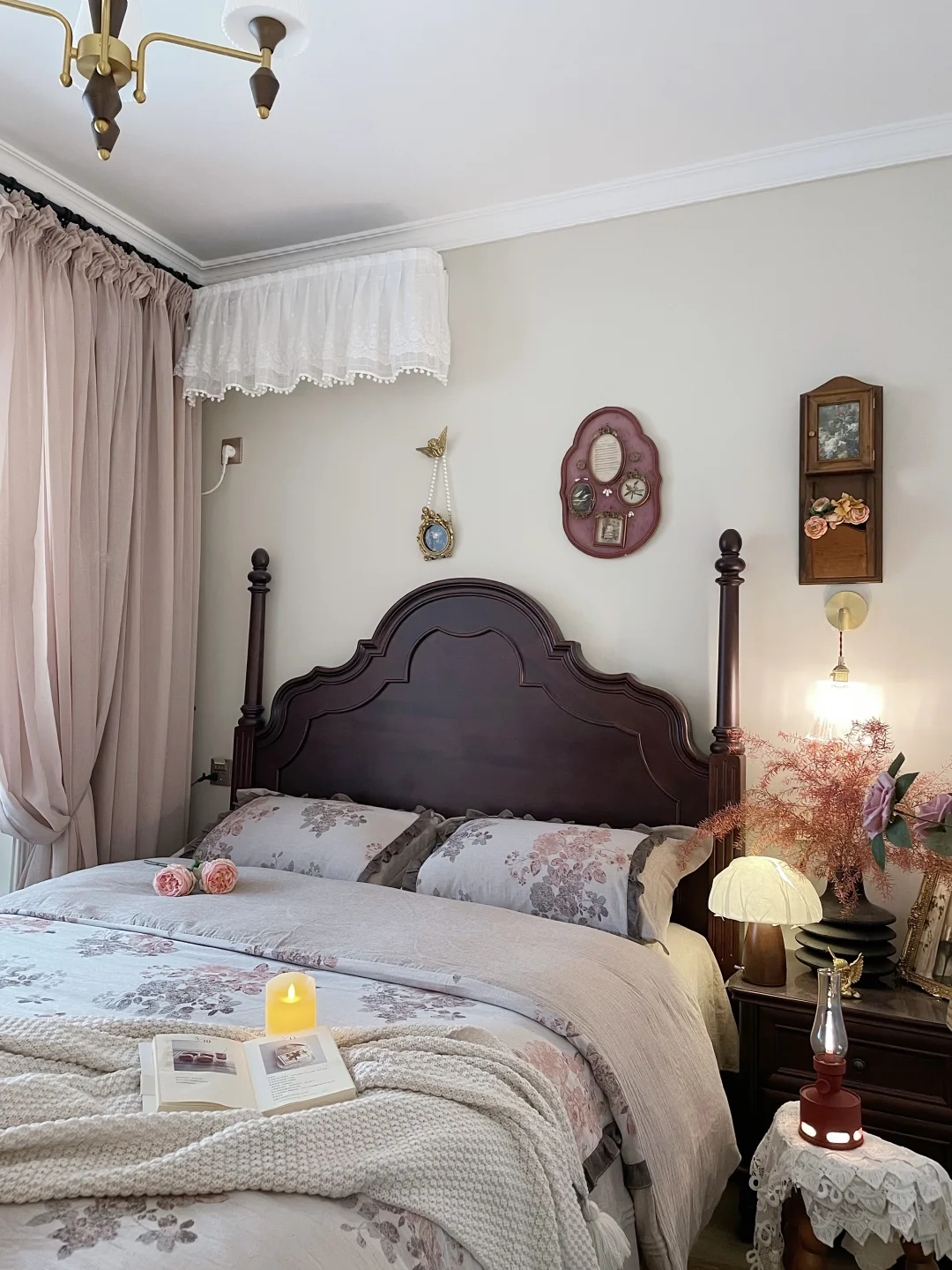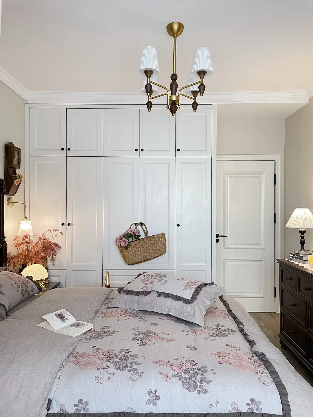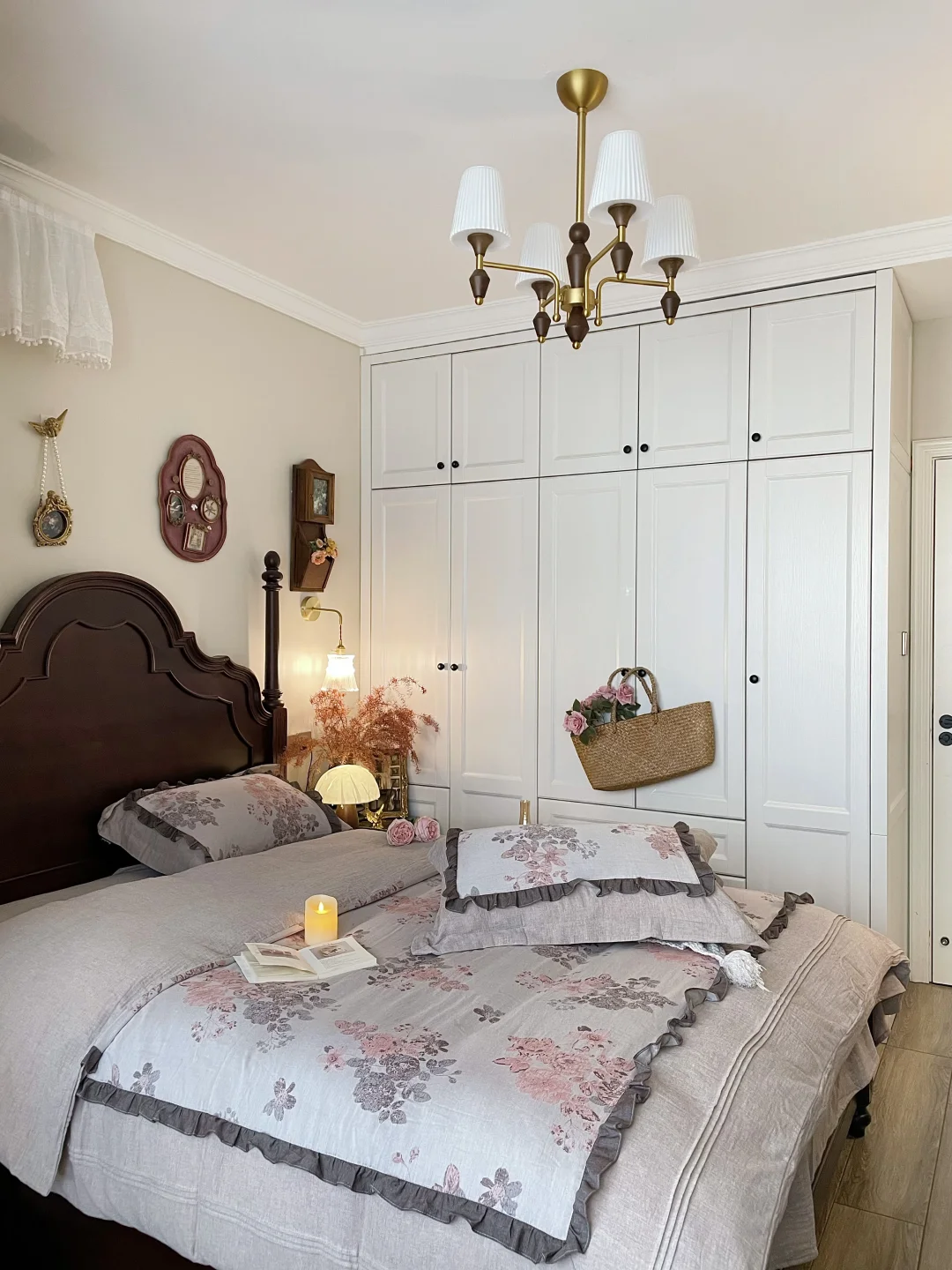 空间够的话,床尾搭配同系列的斗柜,风格统一又和谐,也是卧室收纳小能手,斗柜上还可以摆放一些复古摆件、绿植或画框,给小房间增添更多温馨的氛围感~