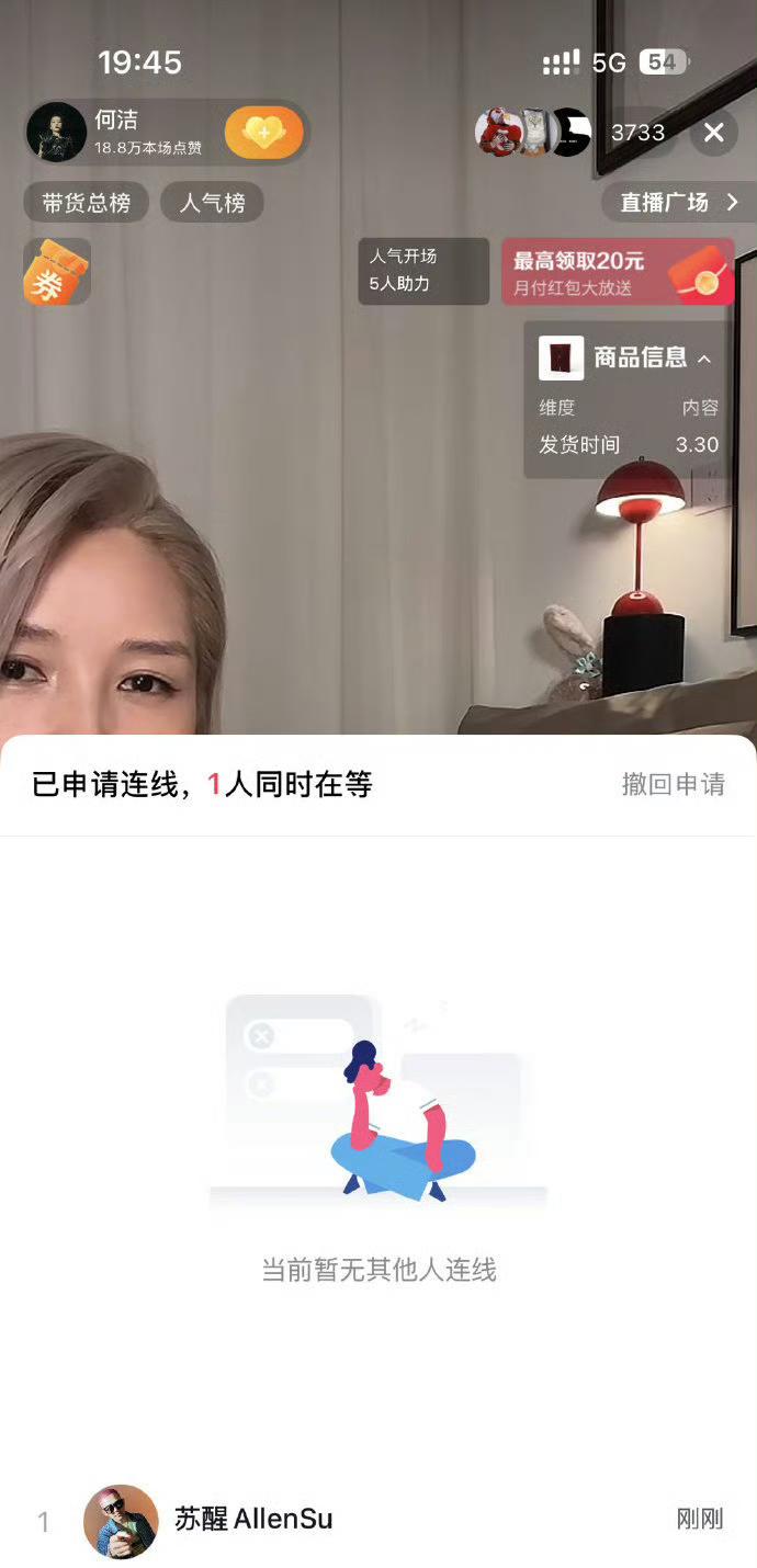 苏醒申请连线何洁10分钟没人理。 哈哈哈,何洁直播苏醒连线竟然被等了10分钟。 气的苏醒立马发了微博蛐蛐何洁。 连线接通后,苏醒声称何洁的团队不够专业,竟然没有看到他的连线申请。 苏醒发牢骚说如果是一个顶流发出的申请估计会秒过!可以看出来俩人关系是真的很铁,苏醒发牢骚的同时也不忘给何洁新专辑打call。