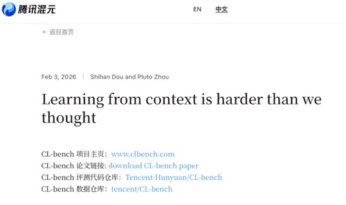 “即使是如今最强的语言模型,在上下文的利用方面仍然做得不好,甚至可以说是还不会利用上下文,从上下文中学习。”2月3日,腾讯混元官网技术博客(TencentHYResearch)发表了一篇名为《从上下文中学习,远比我们想象的要难》的文章,系统的介绍了腾讯混元团队联合复旦大学的一项新研究。