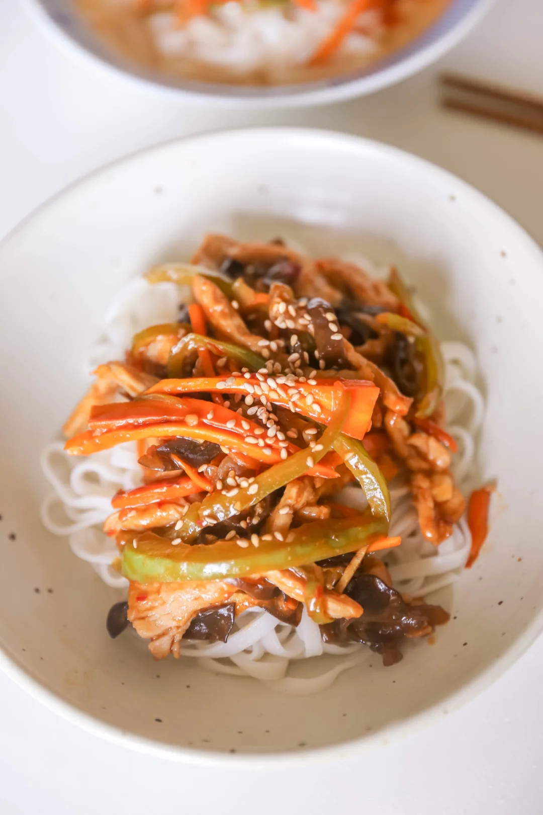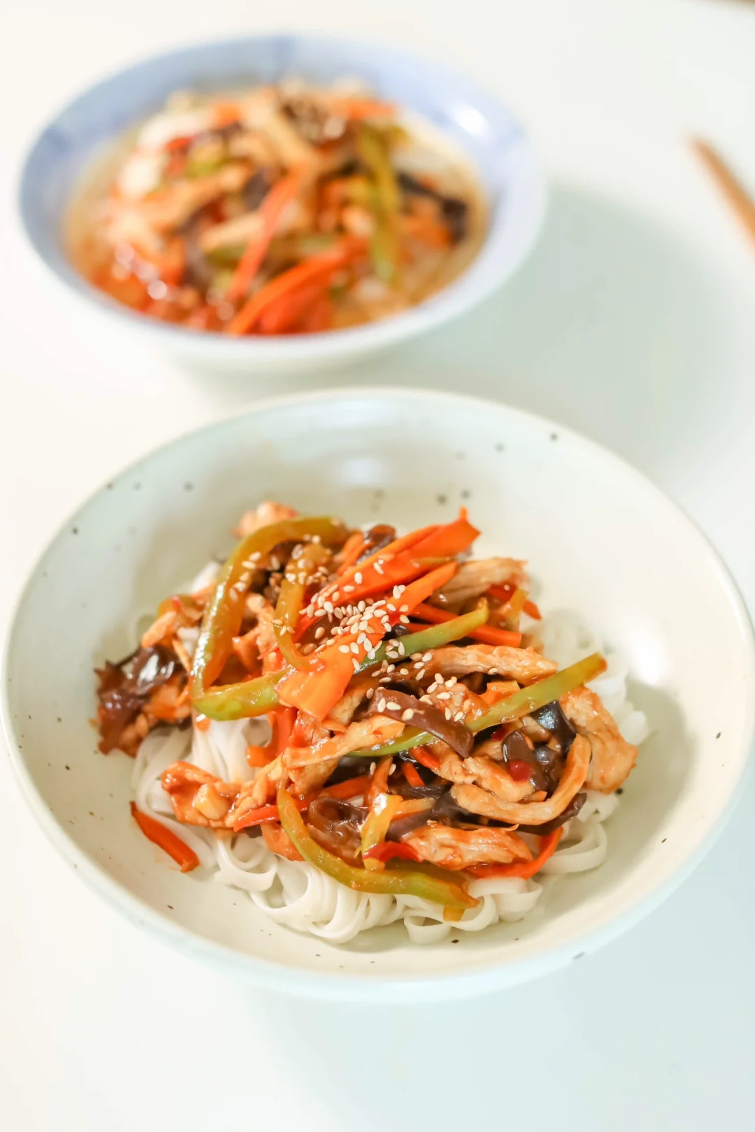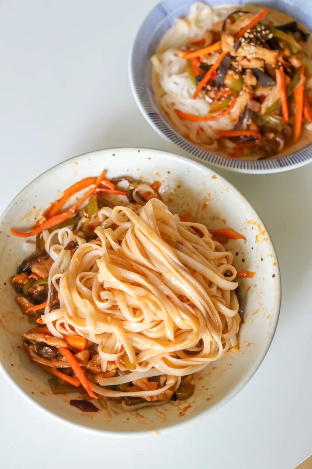 4.面条或者米粉煮熟,加入炒好的鱼香肉丝臊子即可。