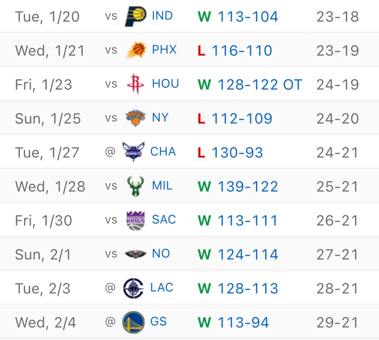 76人近期势头强劲,取得了一波五连胜,最近十场赢了七场,在此期间进攻效率联盟第一。