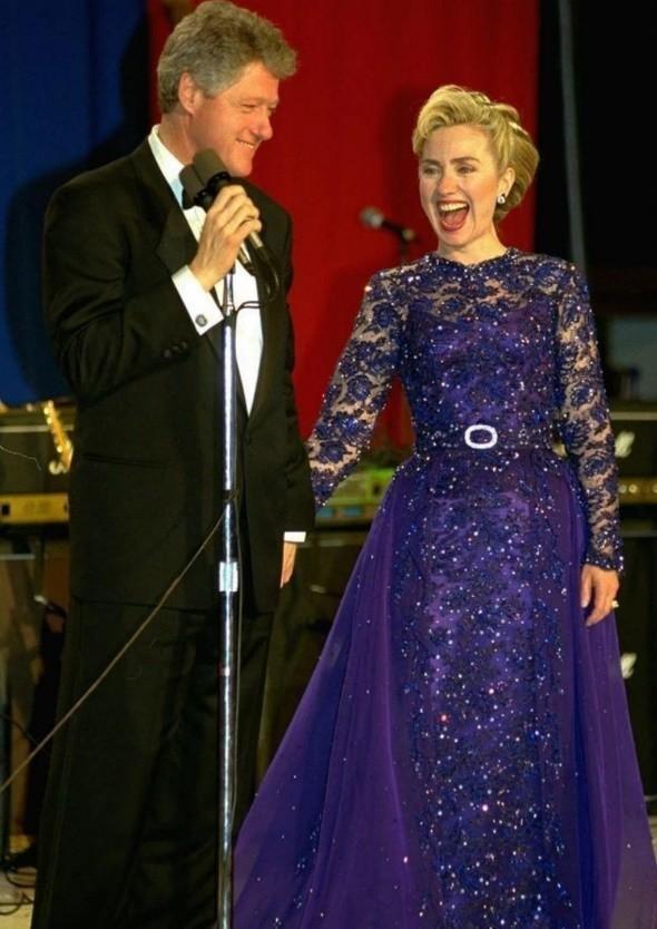 25岁的克林顿蓄着浓密的络腮胡子,留着棕色大卷发,形象狂野又带文艺范儿;他右手拿