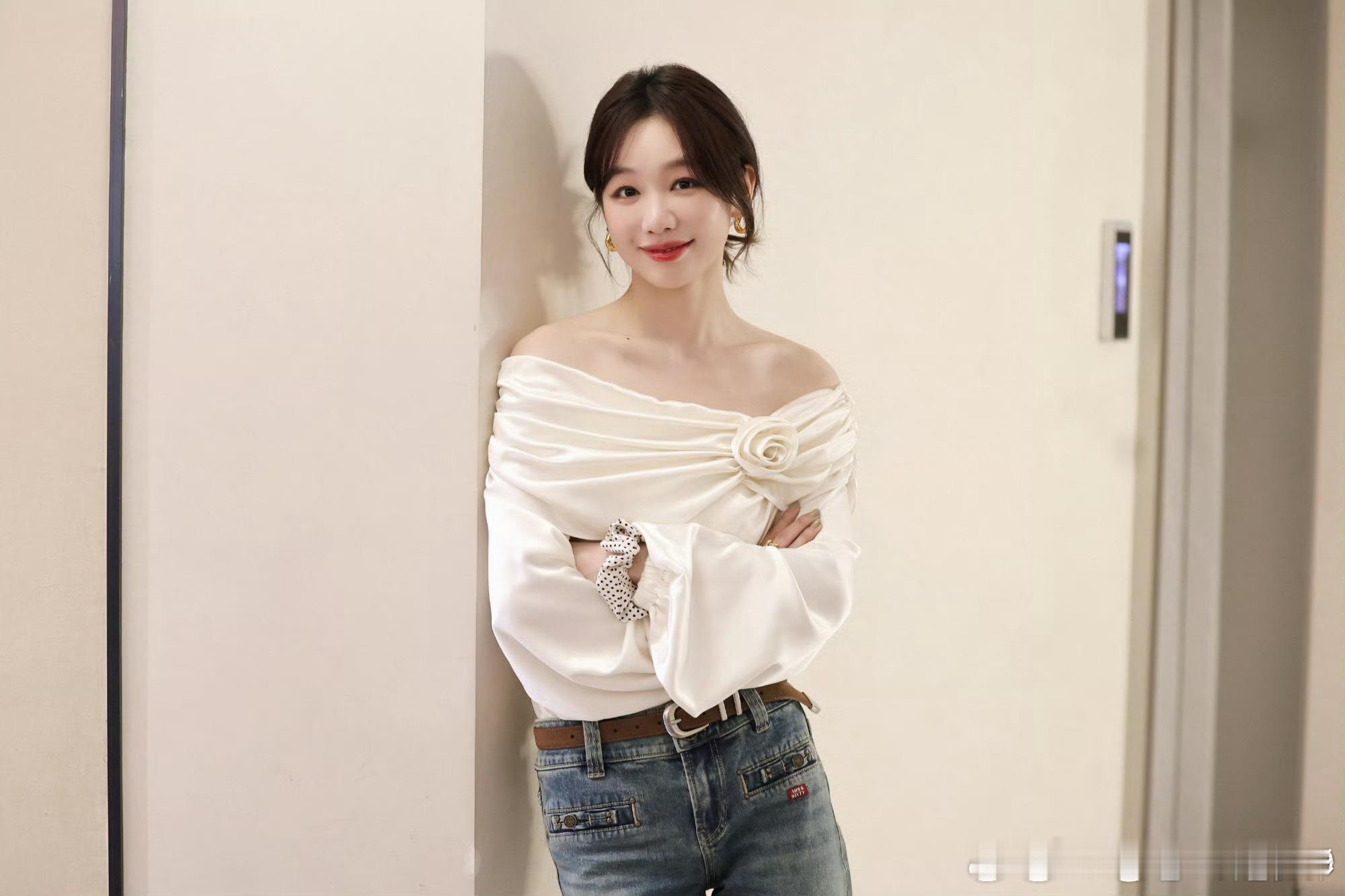 徐梦洁古早台偶女主那味儿 格纹元素和牛仔裤的搭配经典不过时,加上她的甜笑,画面顿