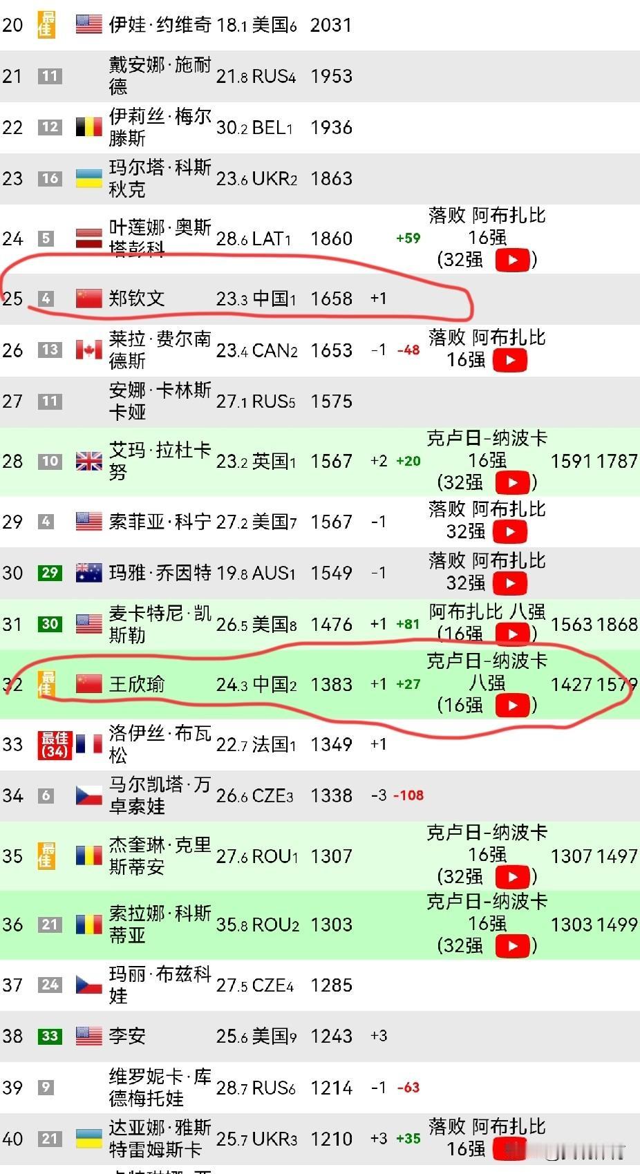 王欣瑜晋级WTA250克卢日-纳波卡站(罗马尼亚)八强,追平职业生涯世界排名最高32,排名直追郑钦文! 王欣瑜在以6-4、6-2战胜瑞士🇨🇭选手丽贝卡·马萨洛娃之后,晋级赛事八强,即时世界排名来到第32,与职业生涯最高排名持平。 袁悦也晋级八强。