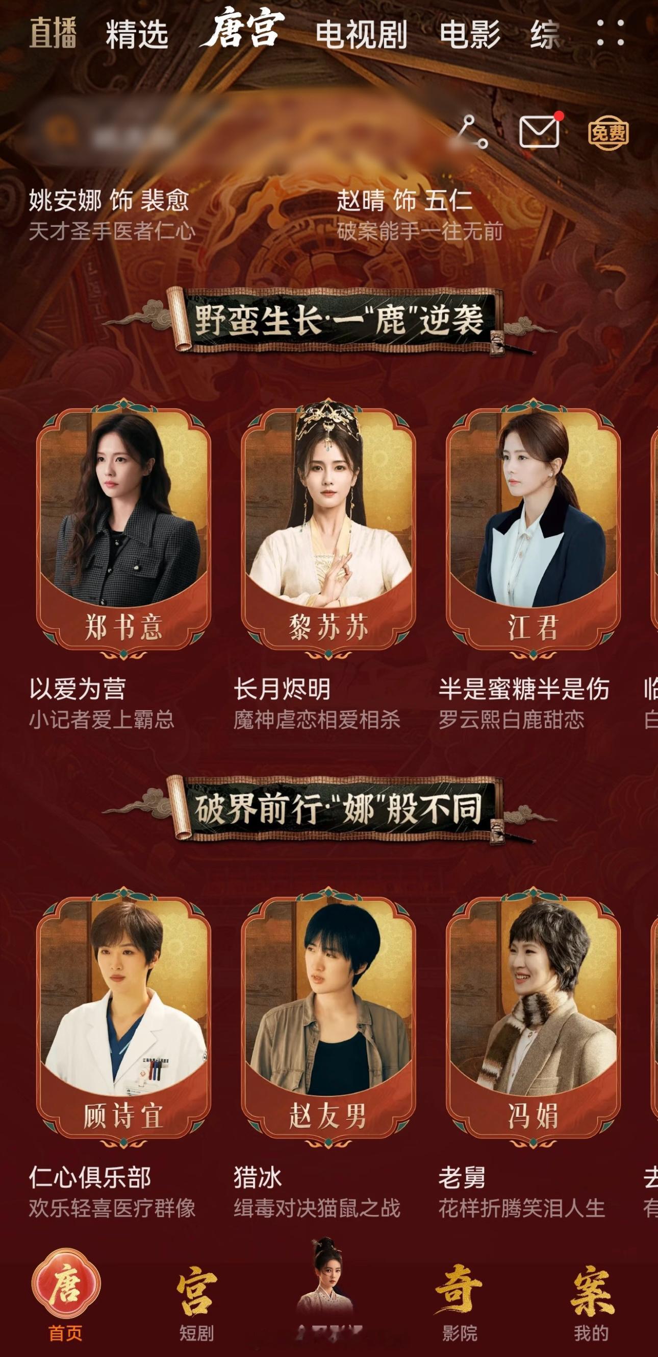 华为视频给唐宫奇案的专栏排面白鹿和二公主有人物专栏