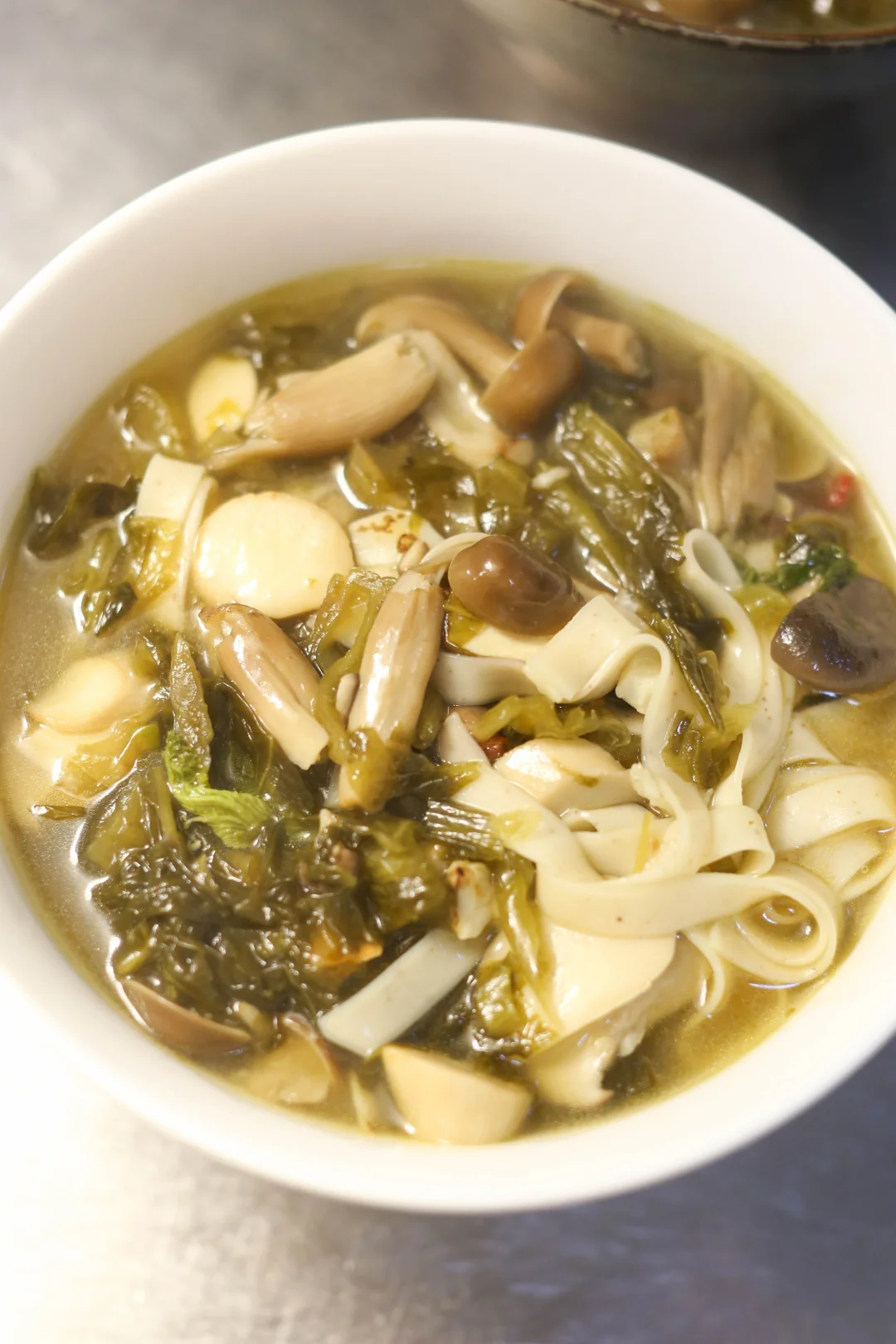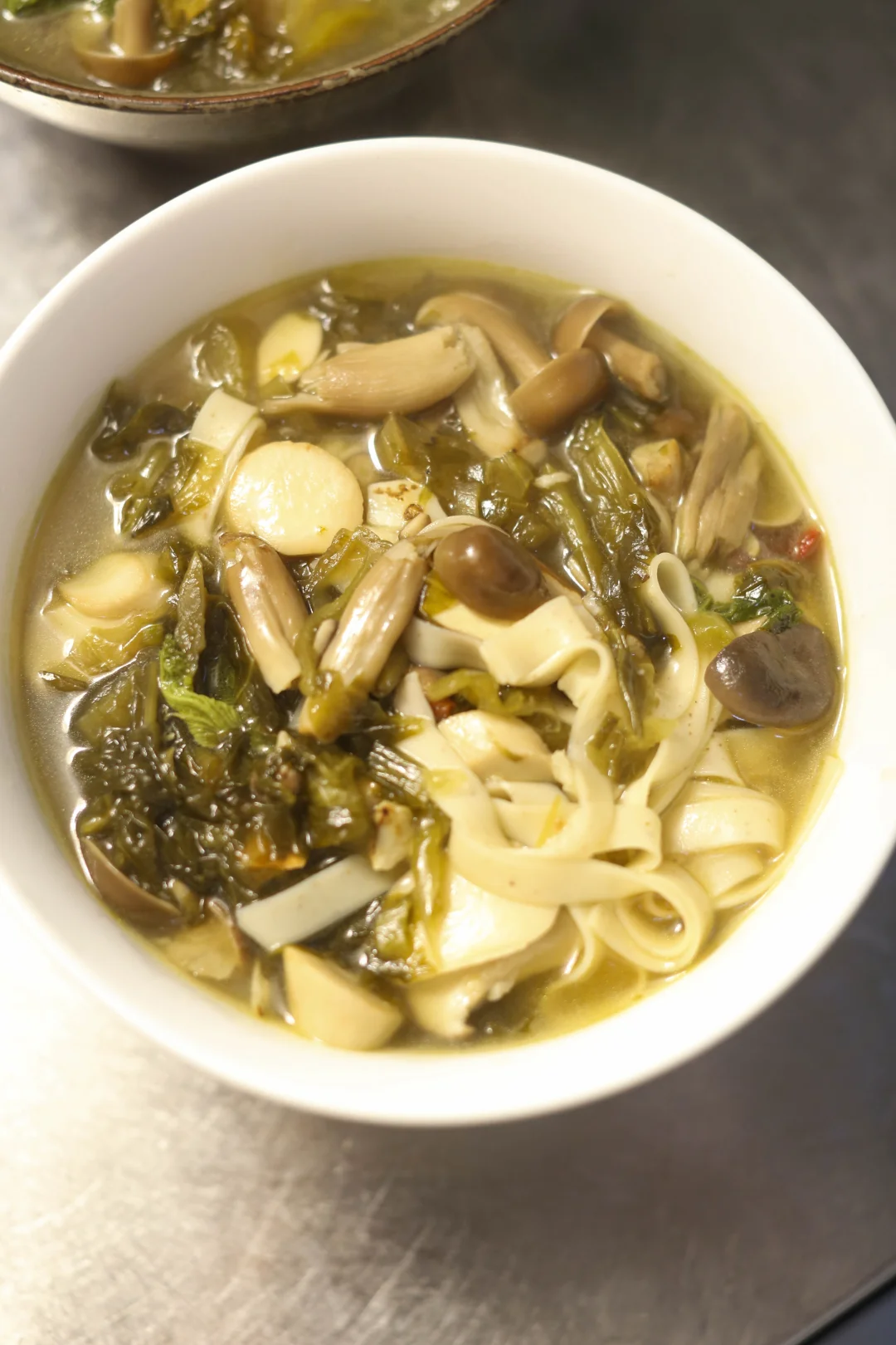 酸菜鹿茸菇炝锅面(363)汤头清鲜面条爽滑