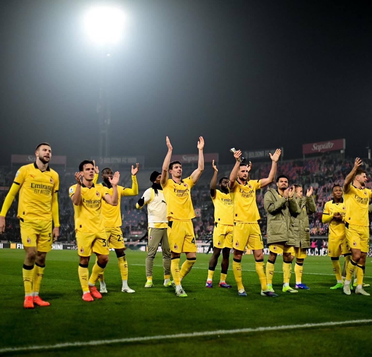 法国帮表现出色。米兰与博洛尼亚之战赛后米兰首发的四位法国球员一起庆祝胜利,他们在