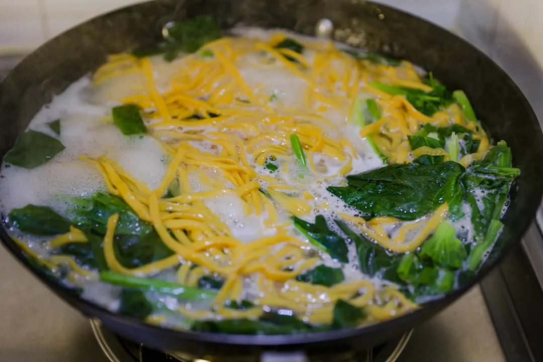 热气腾腾的三餐 笔记灵感 海鲜南瓜面 十一的时候去赶海,挖回来很多小海鲜。当时吐沙干净之后,煮熟了,把汤和小海鲜的肉都分别分成份冻起来了。 今天时间比较紧张,拿出来解冻完毕做了海鲜面。 什么都不需要添加,只需海鲜汤和小海鲜,喜欢吃青菜也可以加一些。 鲜到眉毛了,一点也不夸张。这大概也是生活在海边最大的幸福了~ 高汤加热好了之后,加入化冻的小海鲜,煮沸腾关火。 面条煮熟,适当加青菜。捞出来放入碗中,浇上海鲜汤即可。