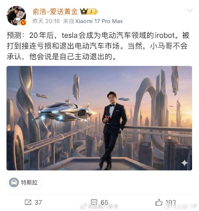 追觅的余浩总最近有很多出圈儿的言论。关于特斯拉造车的事,确实,特斯拉在缩减电动爹产线,要腾出产线去造擎天柱,而且马斯克明显对造车没兴趣了。而且我也说,马斯克总没兴趣,完全是因为中国电动爹太猛,比亚迪把他想实现的梦想实现了——造一辆超级便宜的国民电动爹。但要说特斯拉“接连亏损退出电动车市场”,我觉得也没必要。因为“耐用消费品”这东西,也不是光拼价格,它也讲究个“情绪价值”。不可能人人都买比亚迪、小米。不同国家的人,情绪价值的点也不一样,所以各国汽车工业在电动爹领域都有自己的机会——就像油车一样,虽然品牌集团就那么几个,但很多国民品牌都保留下来了。特斯拉全球现在一共就仨超级工厂,仨工厂还破产?=======不过也理解余浩总的言论。现在讲究企业家亲自下场带流量,雷军总带起的风气嘛,也好用。追觅是2C企业,更需要流量。余浩总卖力地对接舆论场,说明他是对企业有责任心,有使命感的创始人。人家都这么有钱了还这么牛马,我们要向人家学习。当然,学习之余就不被他那些用来圈流量的言论真忽悠住就行了。=======【这是一个跟踪当日财经新闻的八卦,写写看大家愿意看这种吗,还是感觉太浅了,比较无聊?】