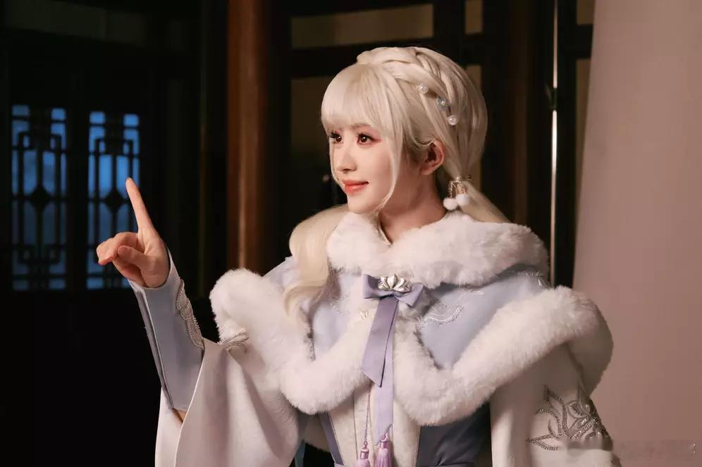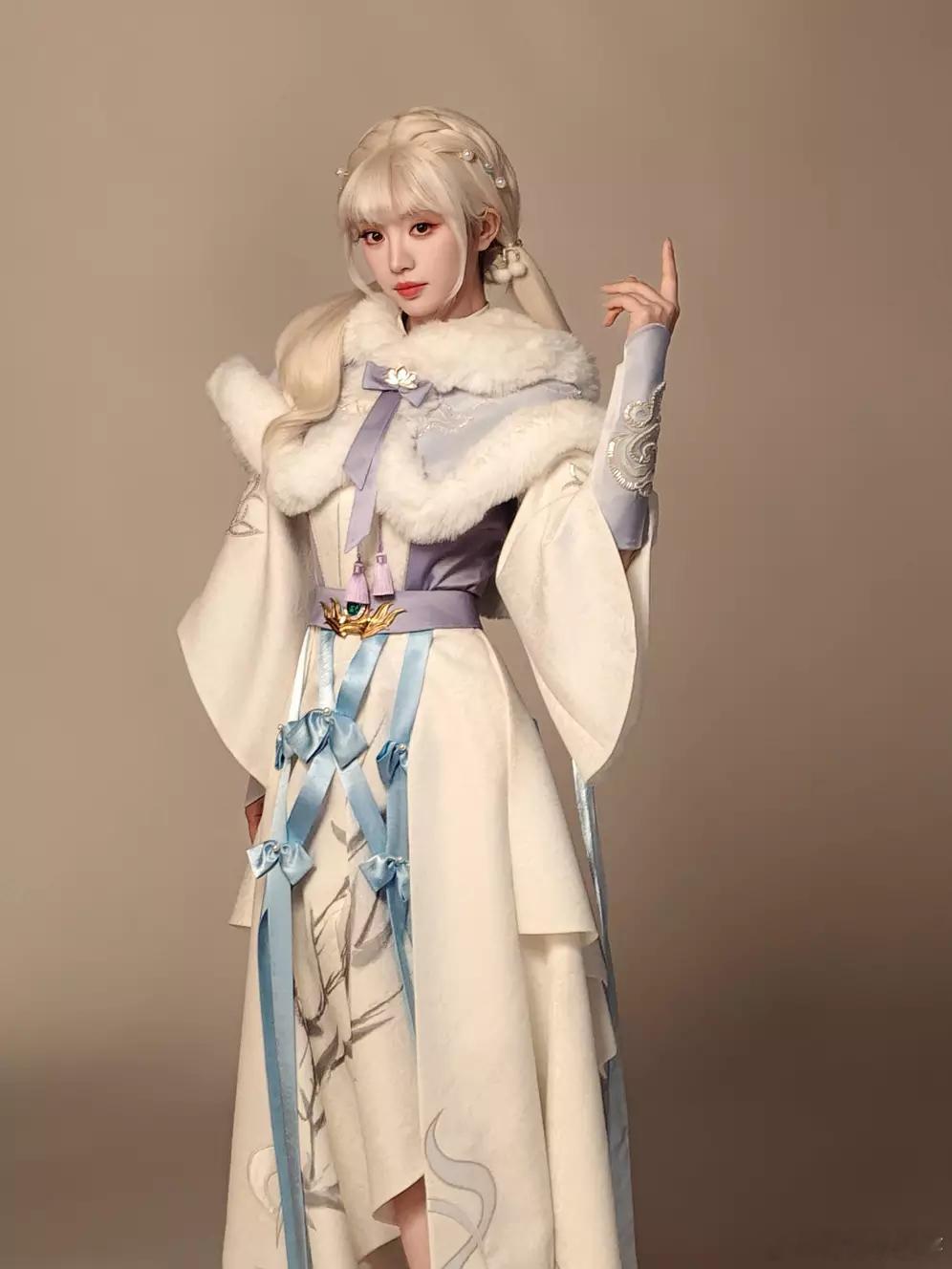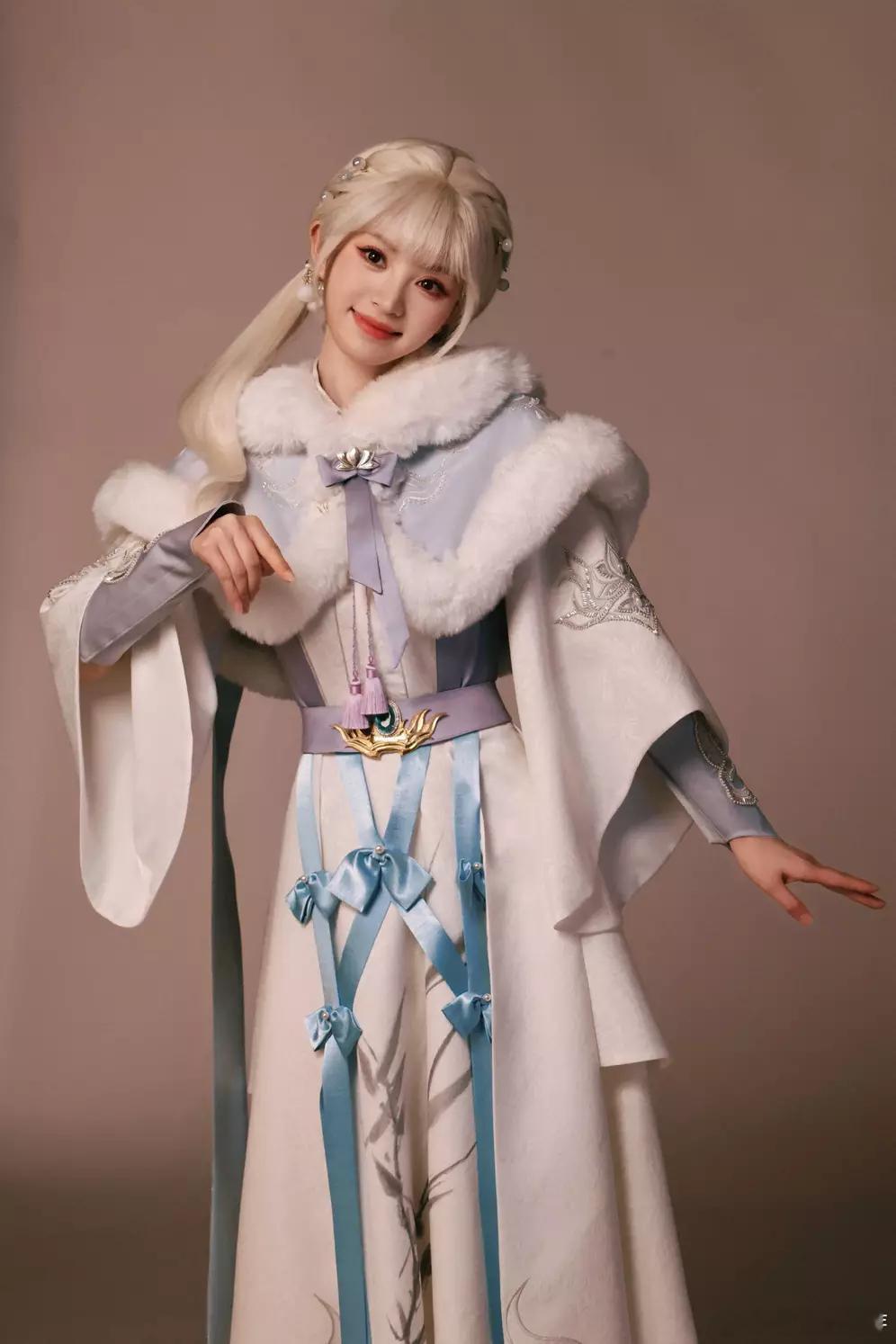 青青娱乐田曦薇穿浅蓝古风裙仙气飘飘 银发双马尾俏皮可爱