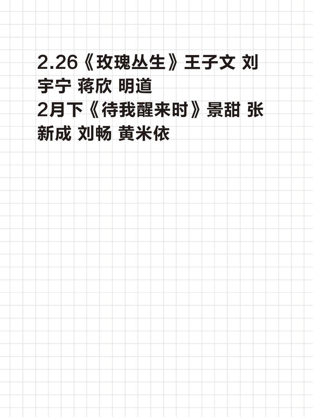 🐧腾讯二月份档期电视剧有你期待的么【2月】2.3《风过留痕》龚俊 姜武 孙怡2.9《重返青春》李诚儒 许娣 蔡明 范明2月中《纯真年代的爱情》陈飞宇 孙千 郭晓婷 王天辰2月中《我的妈妈是校花》邓恩熙 蒋龙 刘琳 刘些宁2.23《江湖夜雨十年灯》周翊然 包上恩2.26《玫瑰丛生》王子文 刘宇宁 蒋欣 明道2月下《待我醒来时》景甜 张新成 刘畅 黄米依