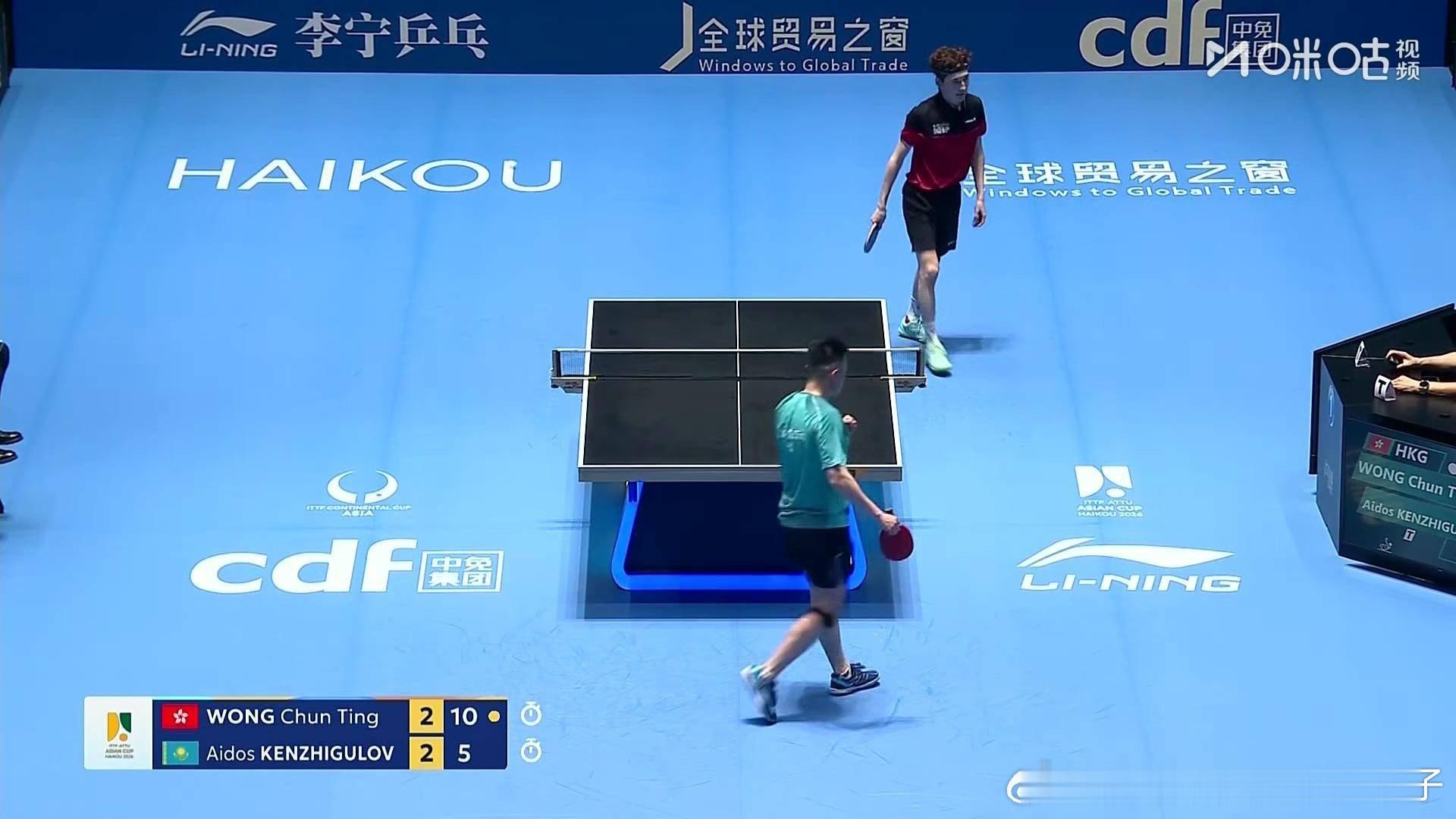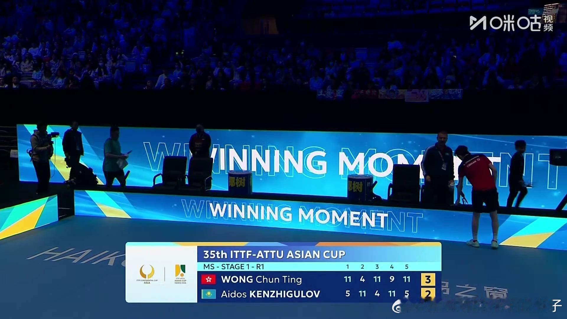 黄镇廷3比2肯日古洛夫(5,-4,4,-9,5)2026年国际乒联海口亚洲杯男单