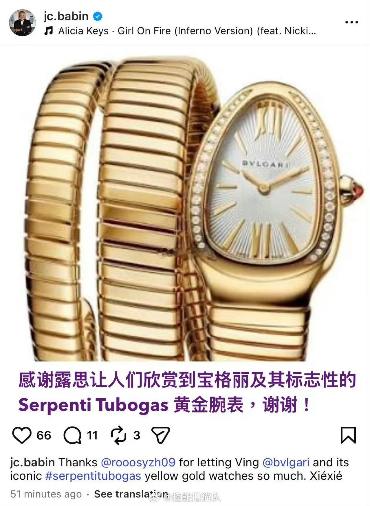 宝格丽不仅认领了,ceo还又发了一条感谢赵露思。鱼丝不行春节前退网吧