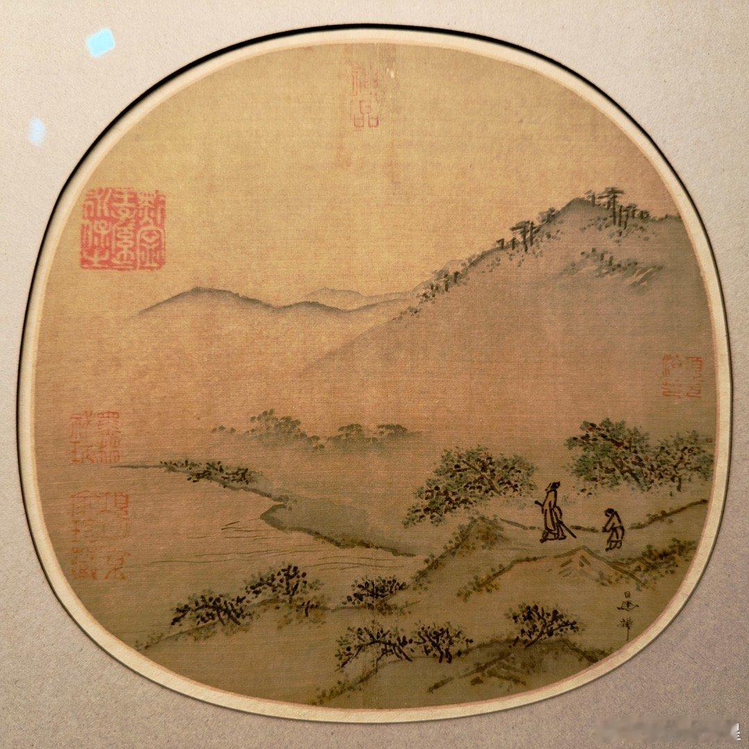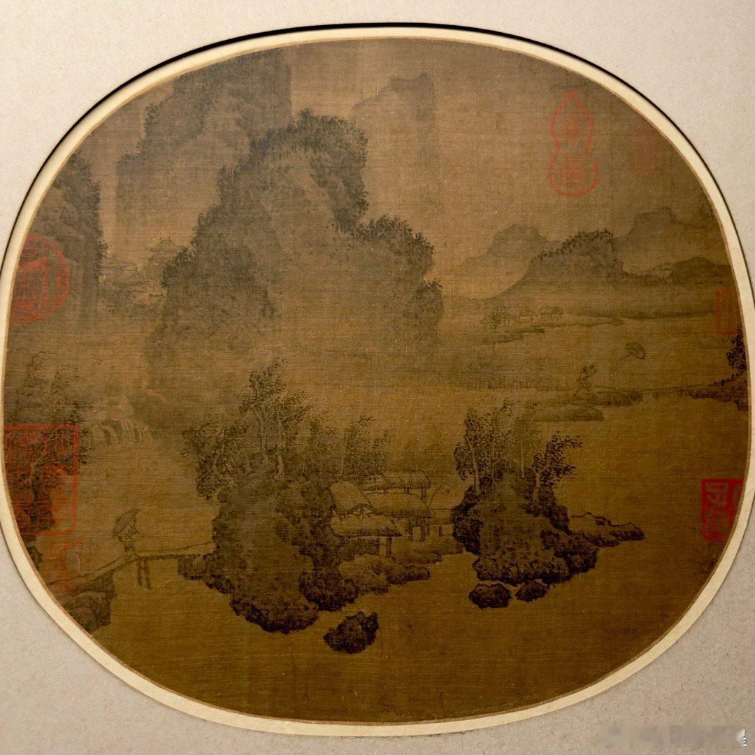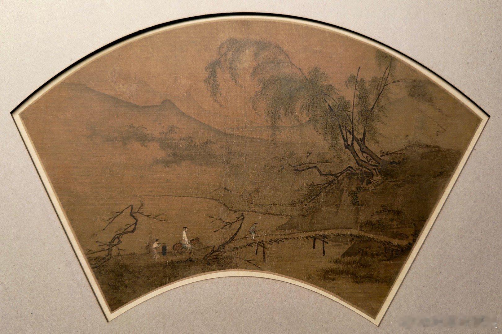 下半期和上半期一样,主打八幅宋元时代的扇面,其中南宋马麟的《郊原曳杖图》(图1)、南宋赵孟坚的《岁寒三友图》(图2)、元代盛懋的《雪溪卖鱼图》(图8)属于名家作品。最罕见的是图3《溪桥归骑图》,这是现存宋画中仅见的日式折扇图。学术界对此图有两种不同观点,一种观点认为此图的形制比例与日本古扇面相近,是目前唯一传世的南宋山水折叠扇面。另有观点认为,日式折扇画要到明代才传入中国,此图画面没有折叠穿骨之痕,可能是宋代宫廷用以装饰宫灯的灯饰。