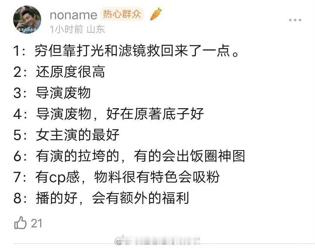 丞磊王楚然《成何体统》目前的repo来看,就是个下饭剧,轻松幽默,剧情幼稚这种剧最好的结局就是类《卿卿日常》,播剧数据还可以,但是没有剧粉,男女主演红利很有限